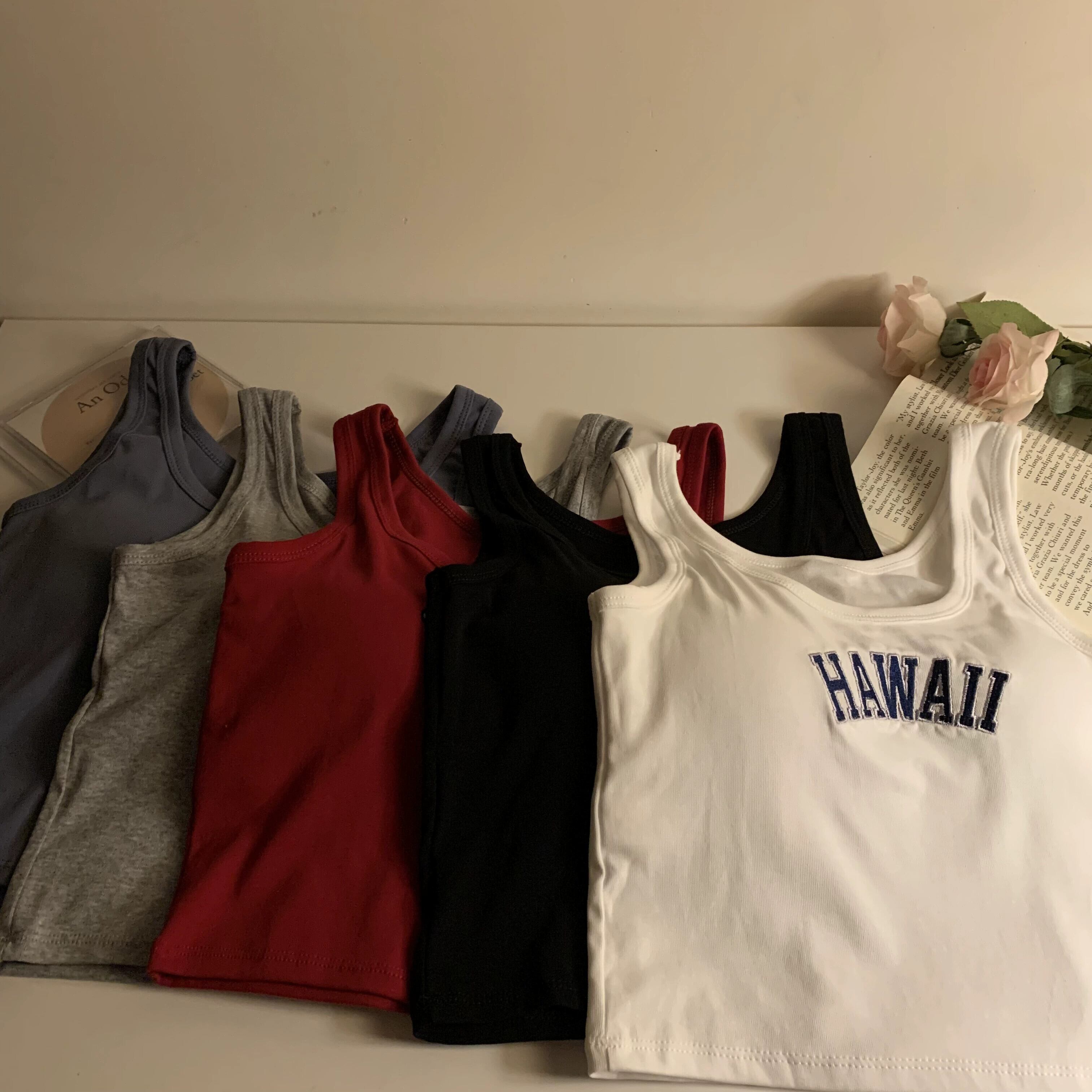 ホットガールレター刺繍小さなキャミソール女性のインナーウェア美しいバック春バージョンのインスリムショートアウタートップス スプリング 春物 0921965987433377
