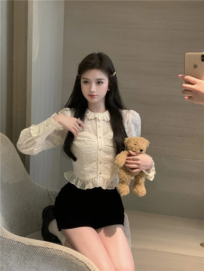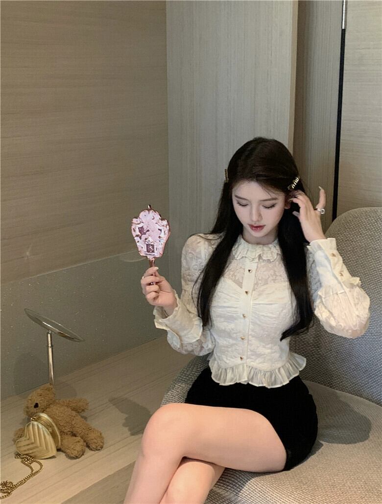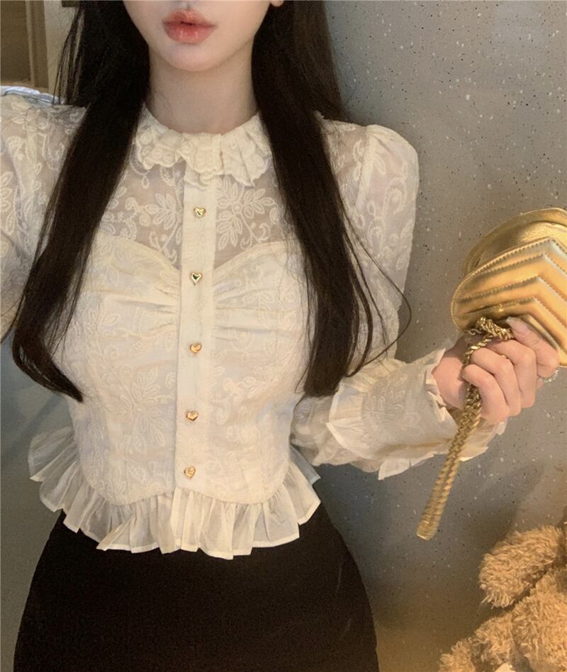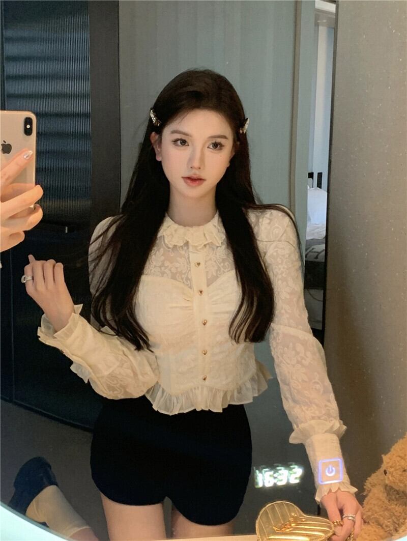 フランス裁判所ステッチレース長袖シャツ女性の夏の 2023 新しいセクシーなショートスリムスリムシャツ潮 ロング サマー 夏物 0921942912011878