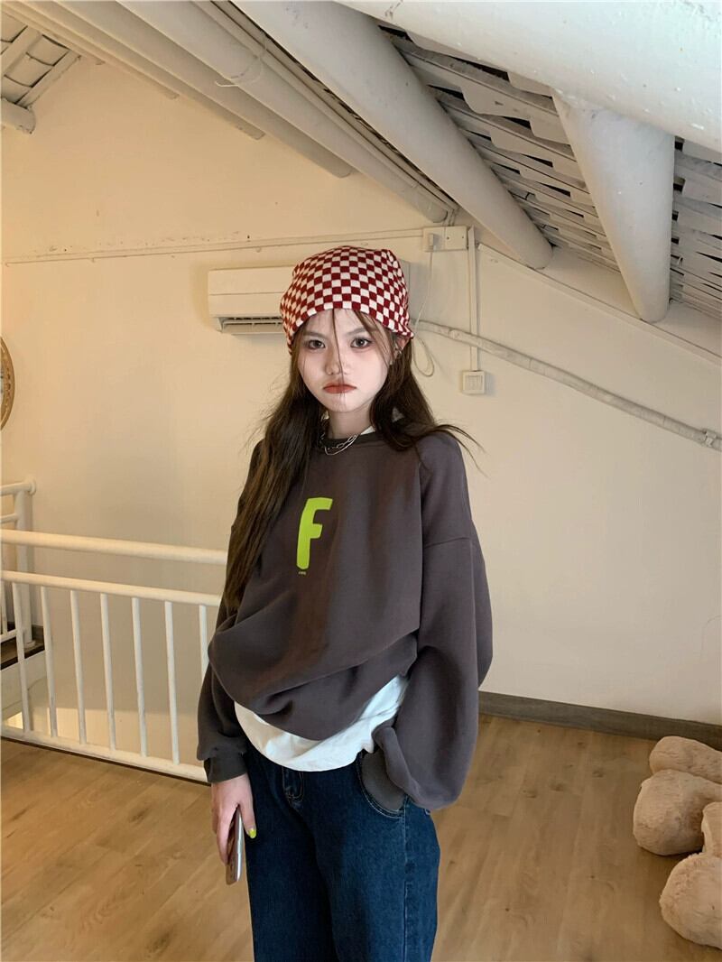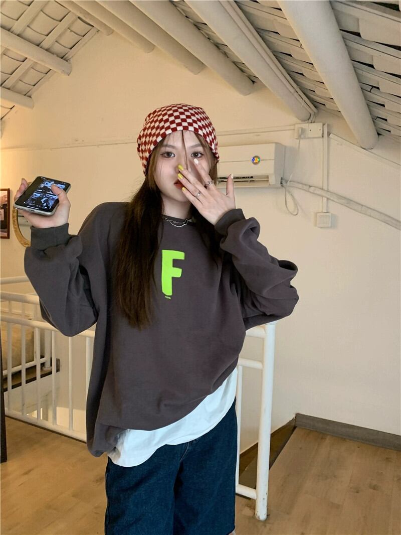 対照的な色のレタープリントのセンスバージョンの厚くなったセーター女性の春と秋の2023新しいファッションオールマッチルーズトップ スプリング 春物 オータム 秋物 0921961180405538