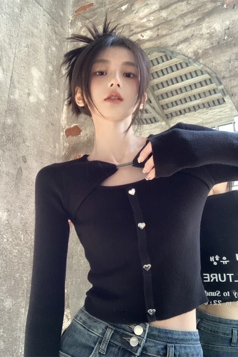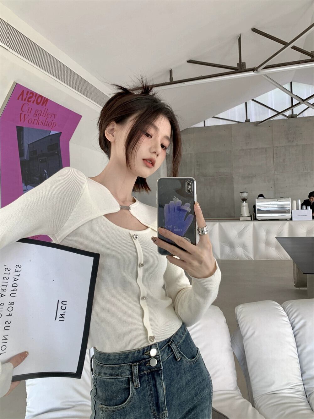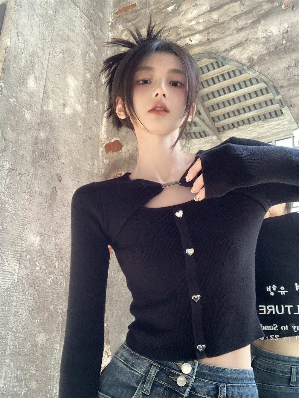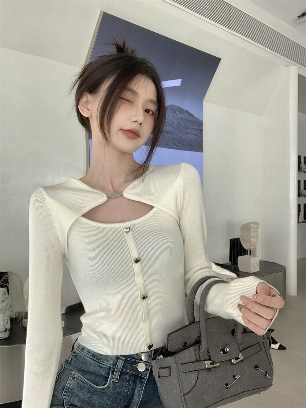 フェイクツーピース長袖ニットボトムシャツレディース春純粋欲望インナーウェアデザインセンスニッチスリムショートセータートップ ロング スプリング 春物 ピュア 0921924029136278