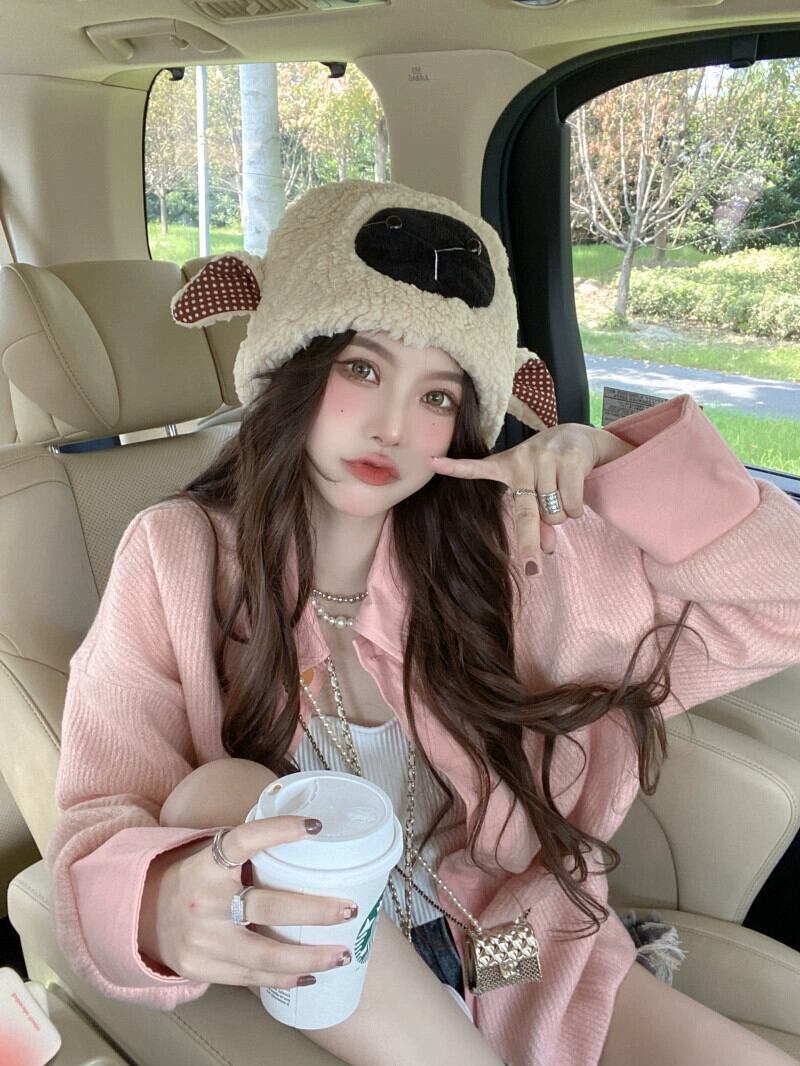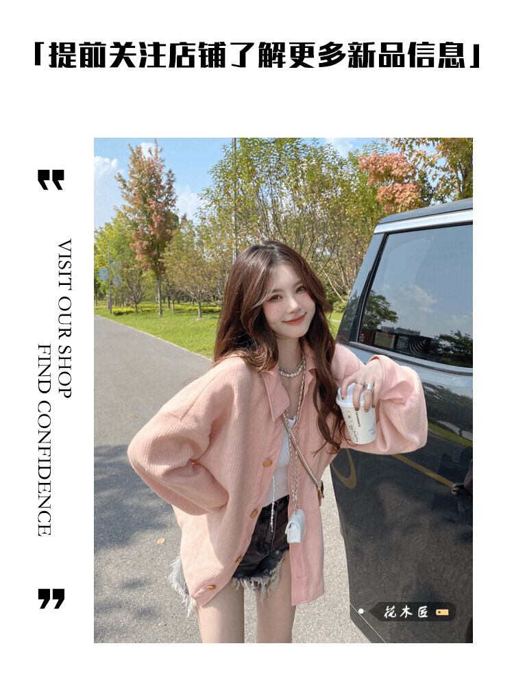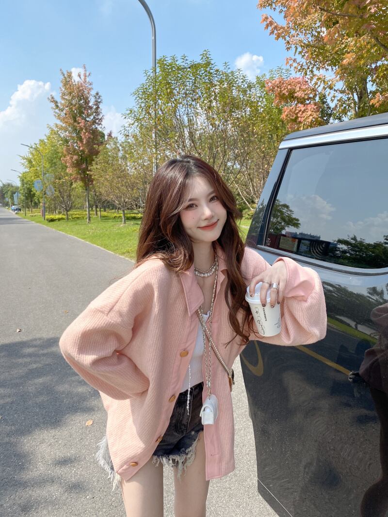 ピンクステッチ長袖セータージャケット女性の春怠惰なスタイルニットカーディガンルーズスイートとニッチラペルトップ ロング 大人ガーリー スウィート キュート カジュアル スプリング 春物 0921998820768718
