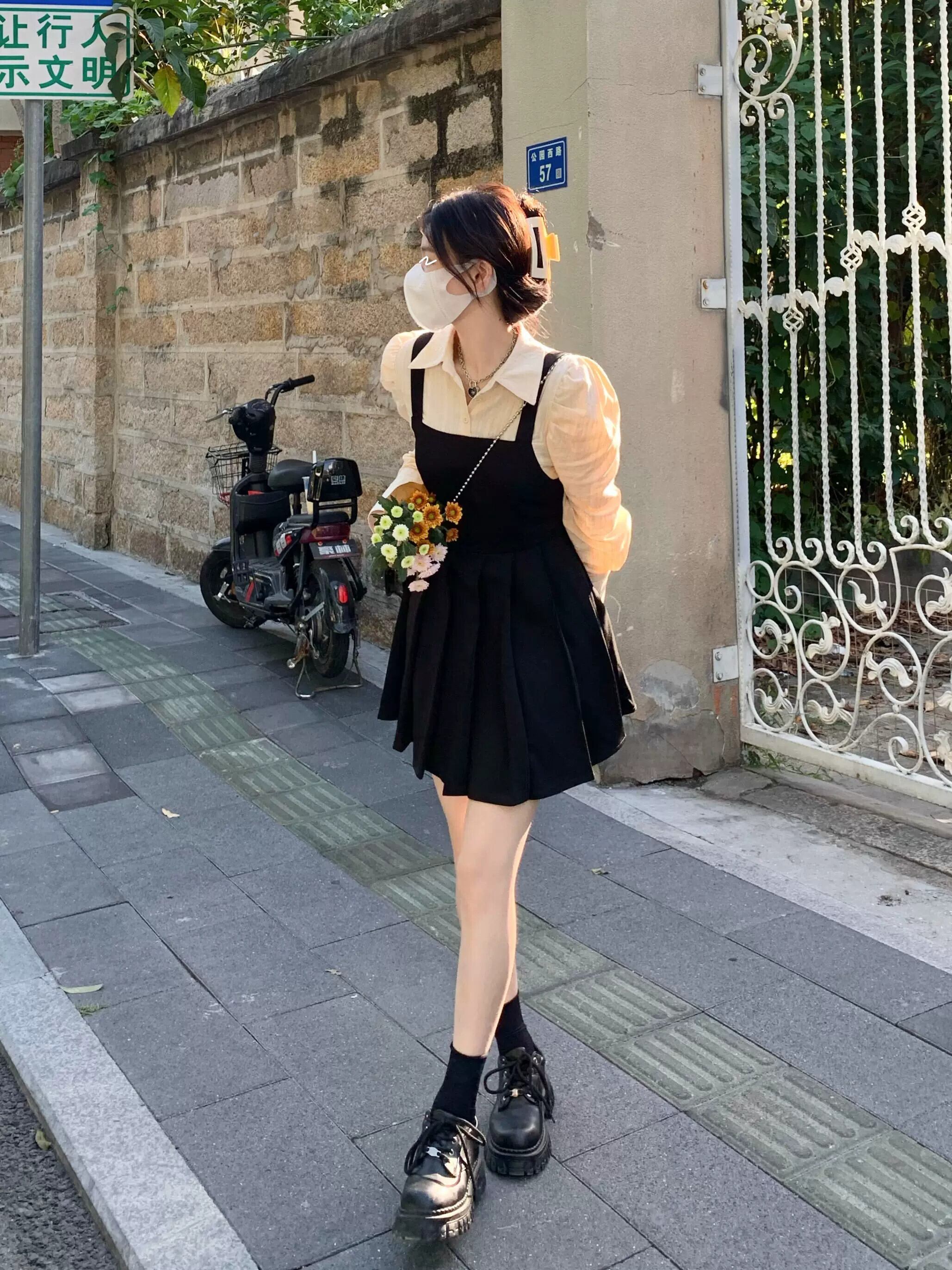 ニッチなデザインセンス偽ツーピース長袖ドレスの女性の 2023 夏の新しい気質ウエスト痩身 A ラインスカート ロング サマー 夏物 Aライン 0921915446830908