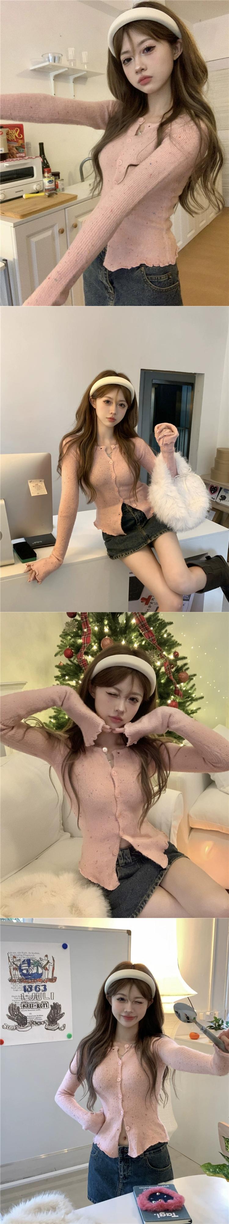 Spice Girl ニット セーター カーディガン レディース 春感 スモール スリム スリム スリム ショート ボトム シャツ セーター トップ付き スプリング 春物 0921997768028541