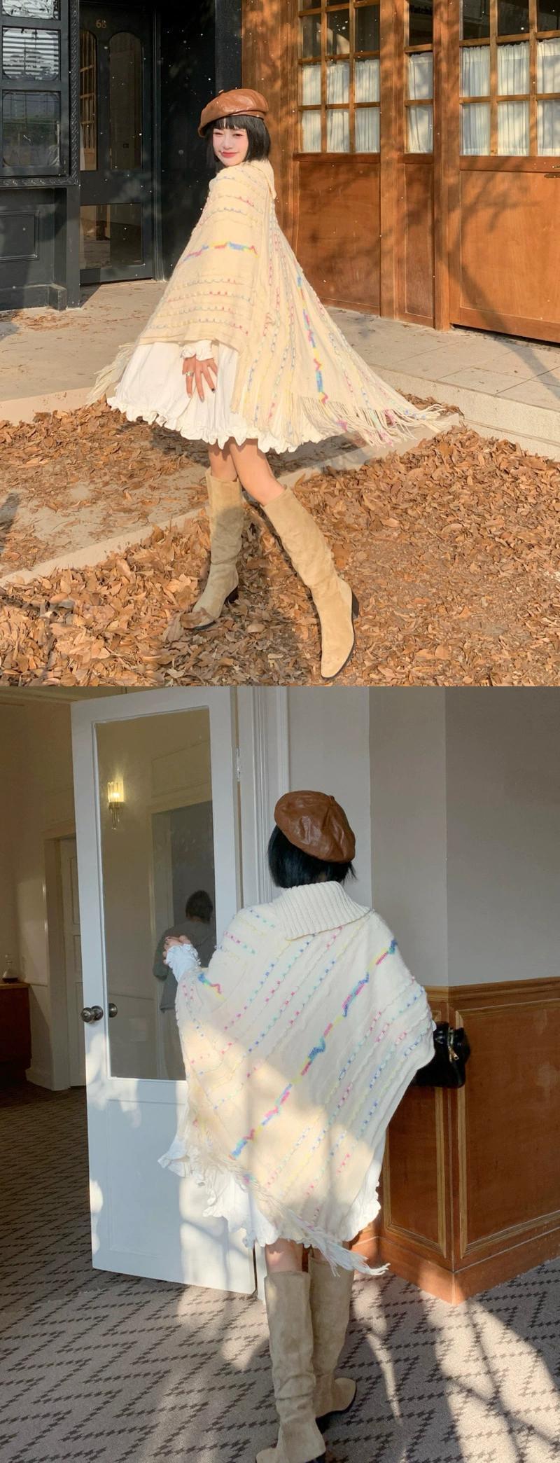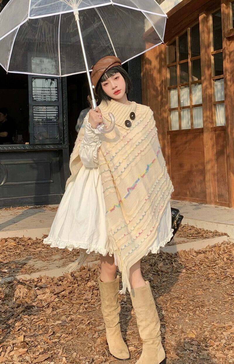 怠惰な風ハイカラーテルプルオーバーニットセーター女性春と秋 2023 新しいミッドレングスケープショールトップコート スプリング 春物 オータム 秋物 0921991648323445
