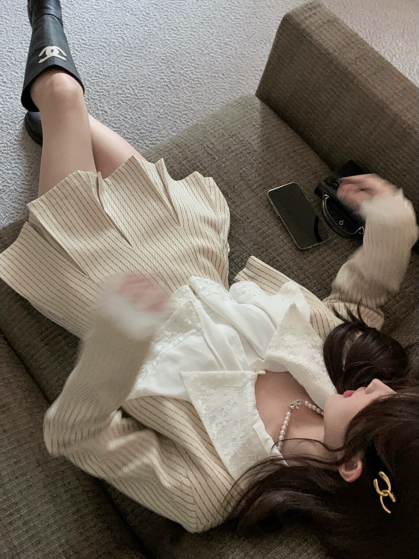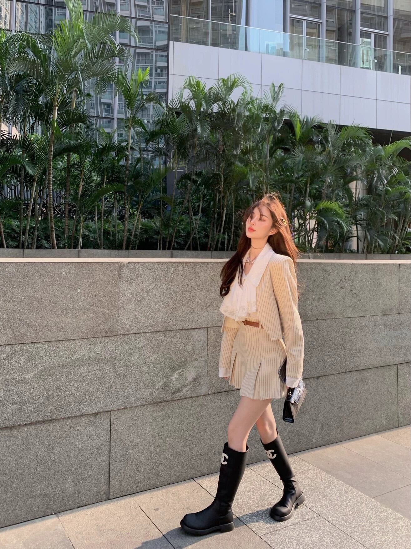 レトロ Xiaoxiang セレブスタイルのスーツの女性の 2023 春の新長袖スーツジャケットプリーツスカート 2 点セット ロング スプリング 春物 0921998476837325