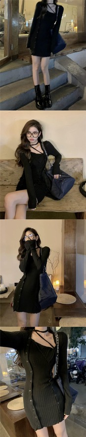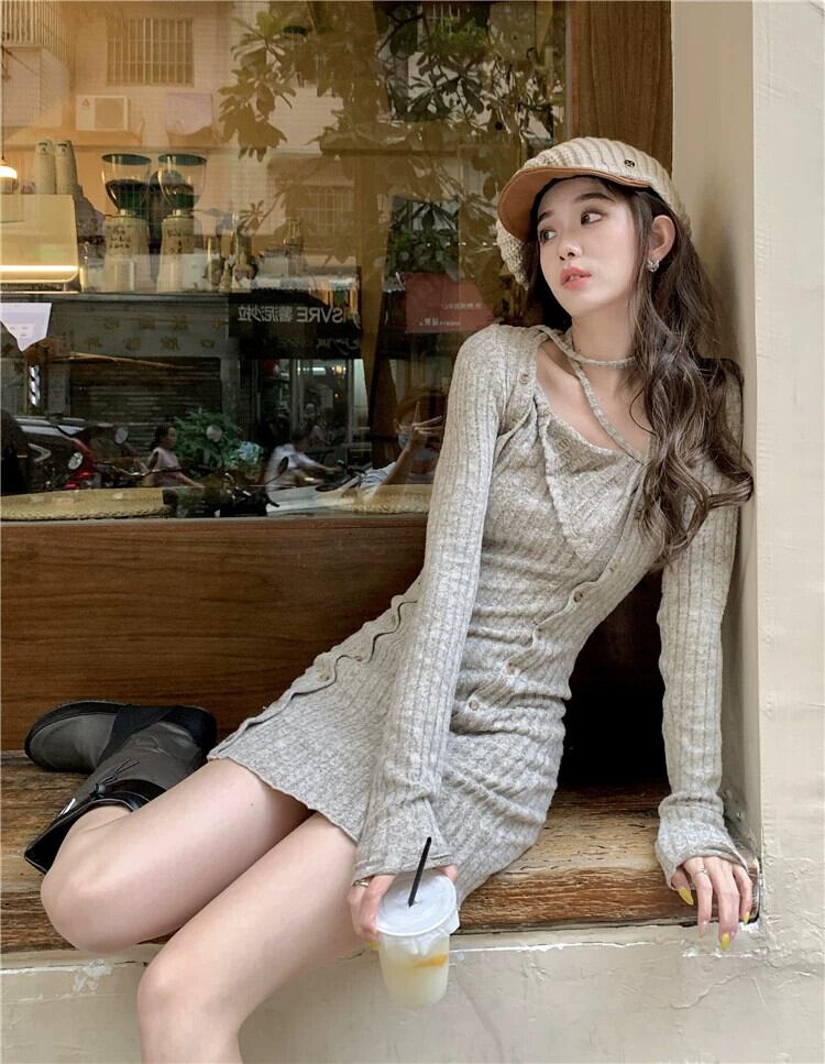純粋な欲望スタイルスリムホルターネック長袖ドレス女性の 2023 春の新デザインシックなヒップスカート ロング スプリング 春物 092199842696574