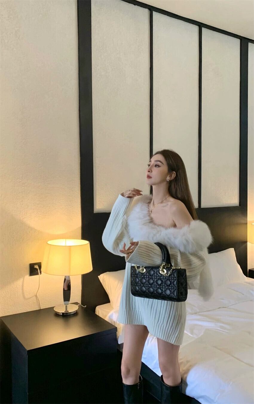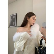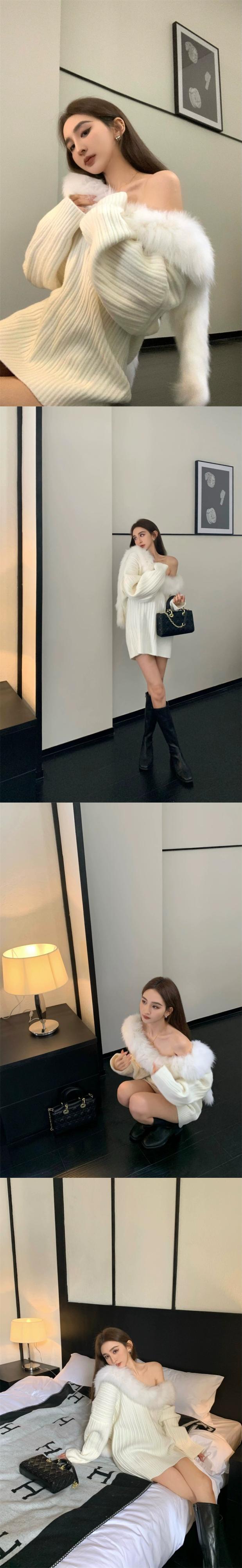 レトロな気質緩い怠惰な風のセーターの女性の冬 2023 新しいファッショナブルな毛皮の襟長袖プルオーバーニットトップ ロング ウィンター 冬物 0921941263796753