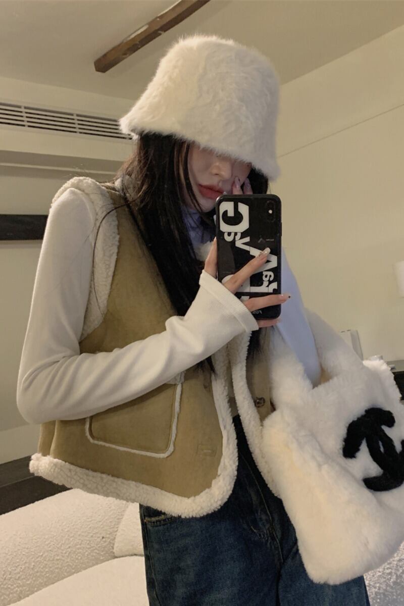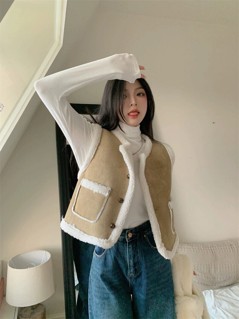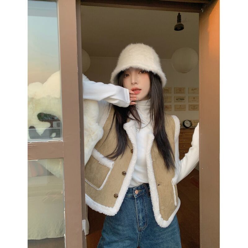 バージョン肥厚模造ラムウールベストコート女性の春と秋 2023 新しいスタイルアウターショート薄いベストベスト潮 スプリング 春物 オータム 秋物 0921938564317801