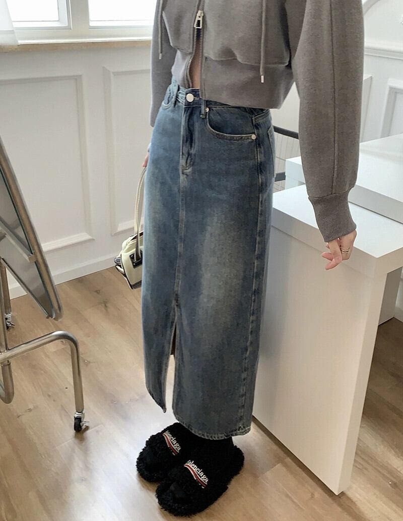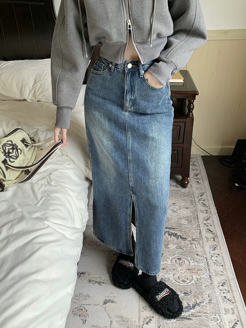 レトロニッチデザインセンススリットスカートレディース 2023 冬の新作ハイウエストスリムバッグヒップデニムスカート ハイウェスト ウィンター 冬物 09219635630945