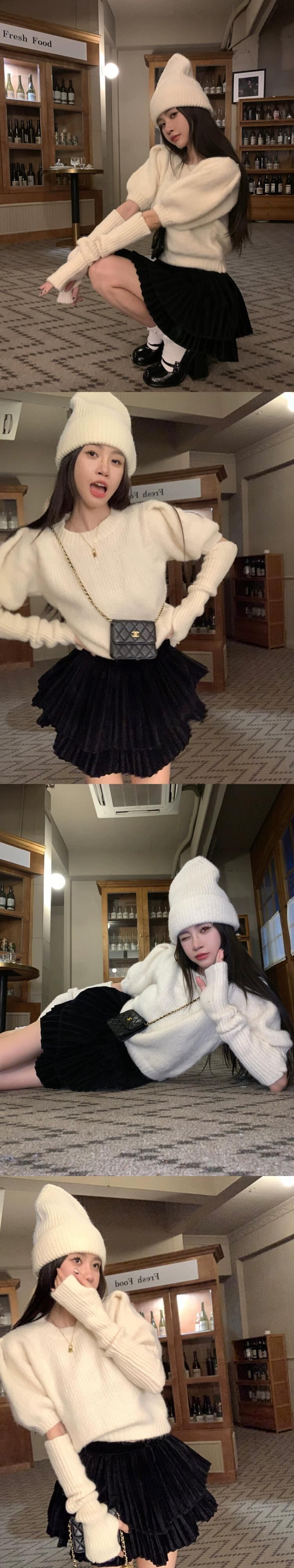 レトロパフスリーブツイスト半袖セーターレディース2023春新作甘いプルオーバーショートニットトップ 大人ガーリー スウィート キュート カジュアル スプリング 春物 0921964520563110