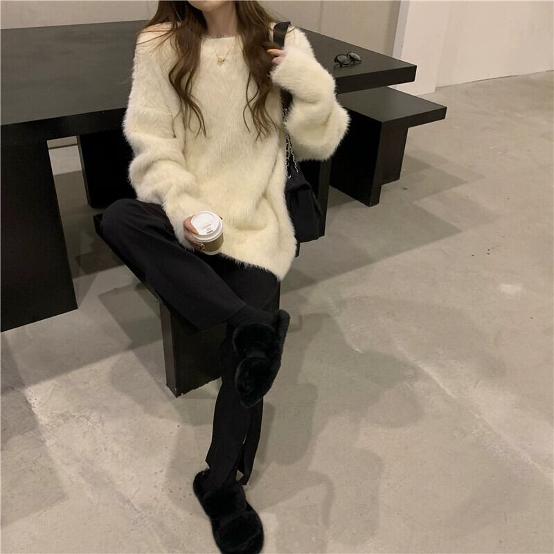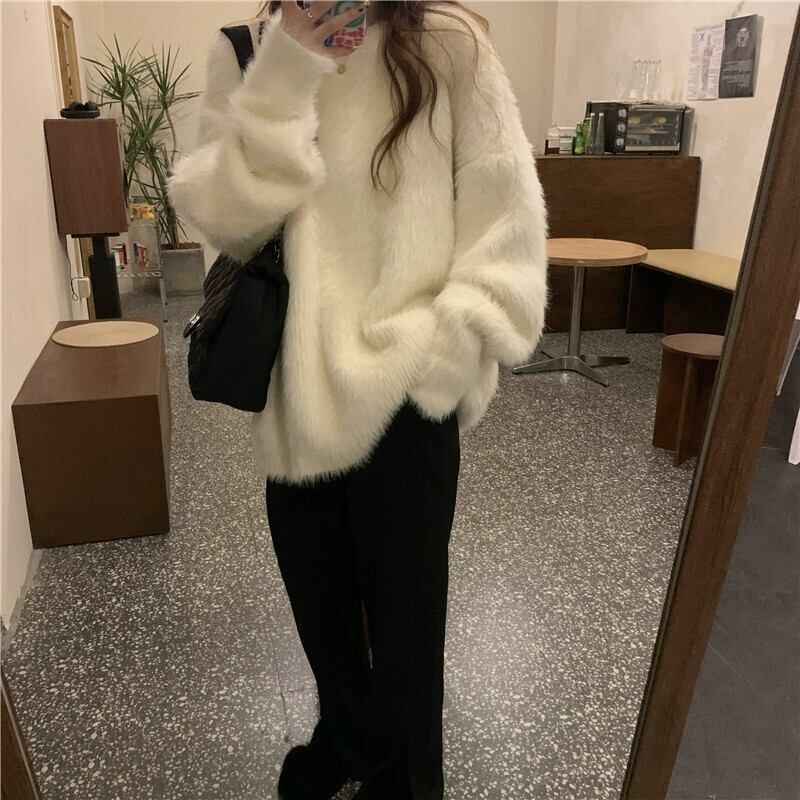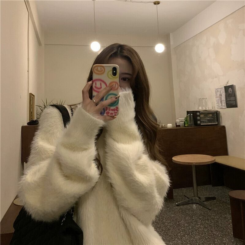 模造ミンクフリースセータージャケット女性春と秋 2023 新しい怠惰なスタイルルーズソフトワックス状アウタープルオーバーニットトップ スプリング 春物 オータム 秋物 0921986911526749