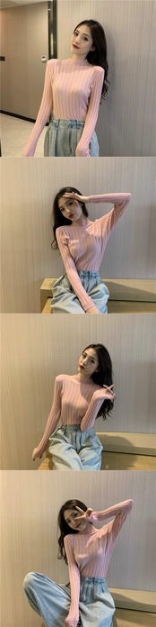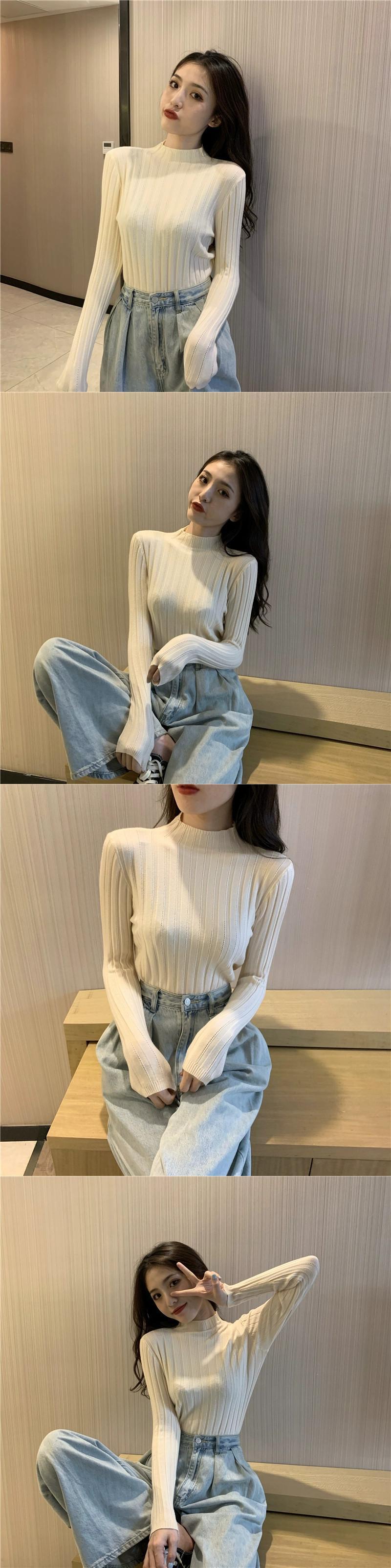 ソリッドカラーのシンプルで多用途なピットストリップハーフハイカラー長袖ニットセーターレディース2023年春の新作スリムボトリングシャツトップ ロング スプリング 春物 0921989002209564