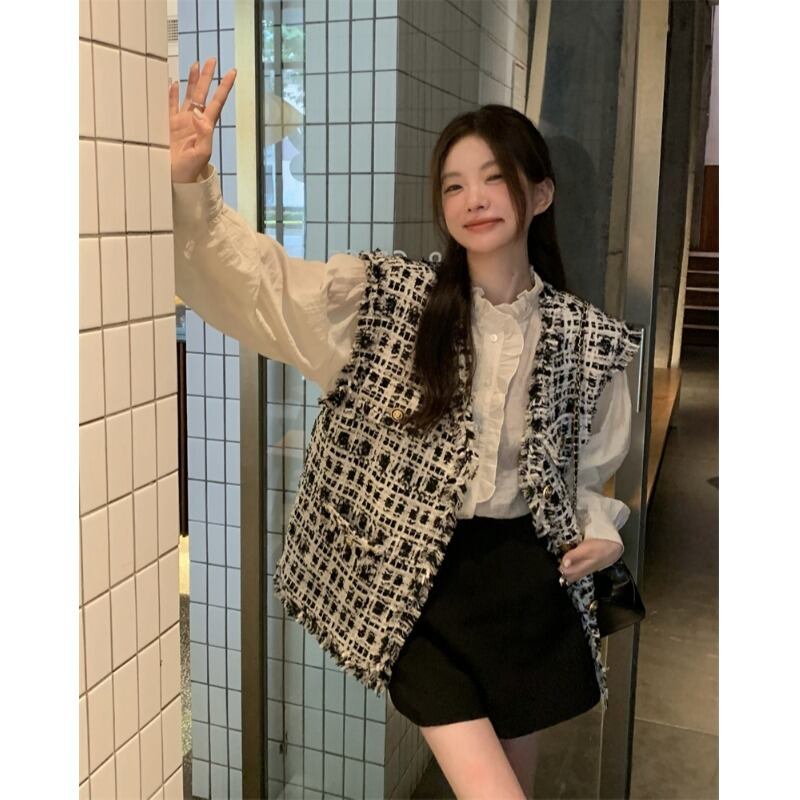 西洋風のレトロな V ネックルーズベストベストジャケットレディース 2023 春の新しいシックなオールマッチアウターウェアベストトレンド スプリング 春物 Vネック 0921986324441711