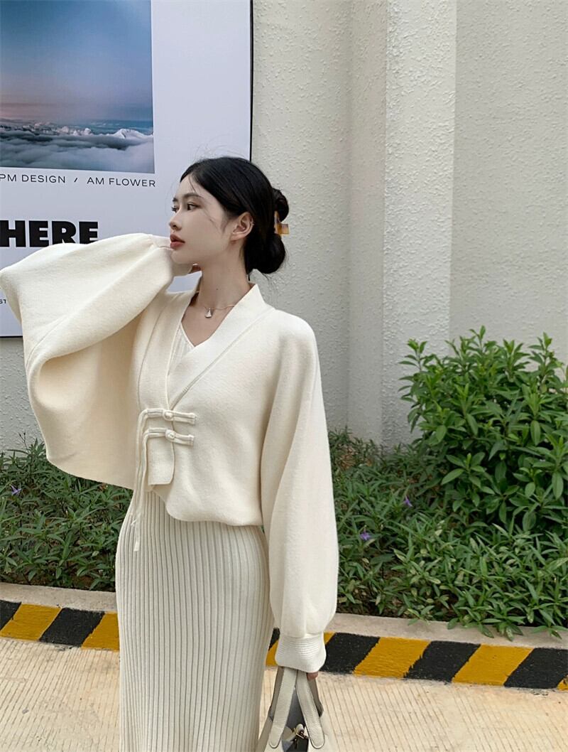 レトロな新中国風のバックル V ネックショート薄いジャケット婦人服 2023 春の新ゆるい優しい風トップ スプリング 春物 Vネック 0921918872432429