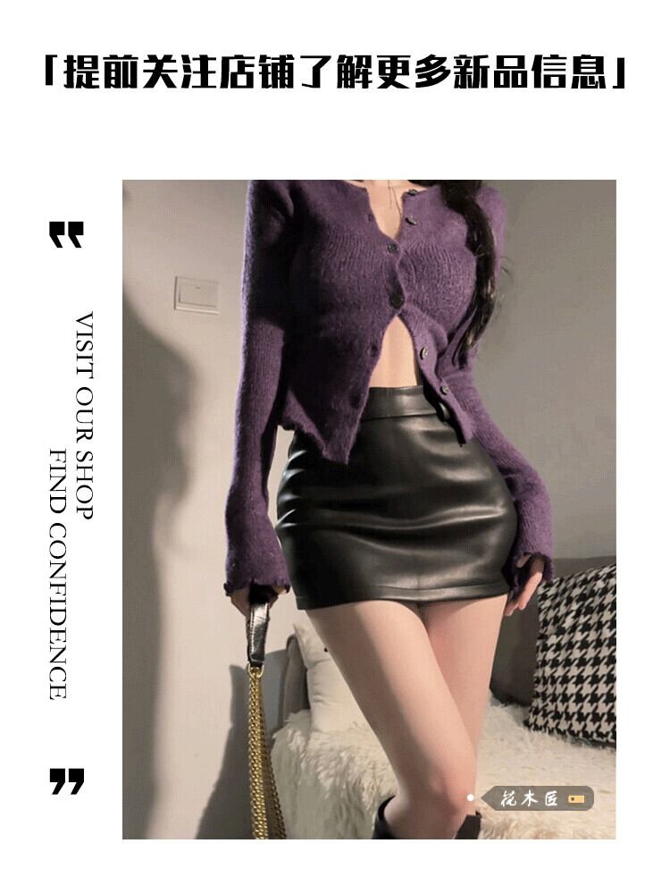レトロなデザインのファッションスーツ女性の春と秋 2023 新しいスリムカーディガントップ pu レザーバッグアームスカート 2 点セット スプリング 春物 オータム 秋物 0921982284125752