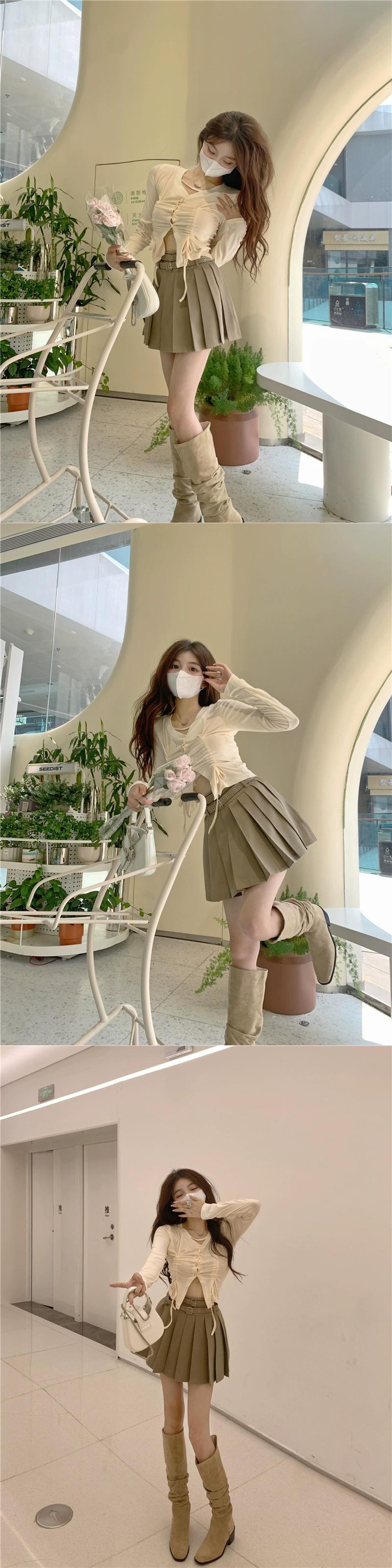 色:アプリコットトップ,ライトコーヒープリーツ+ベルト