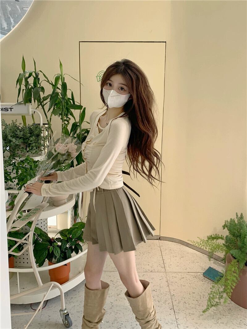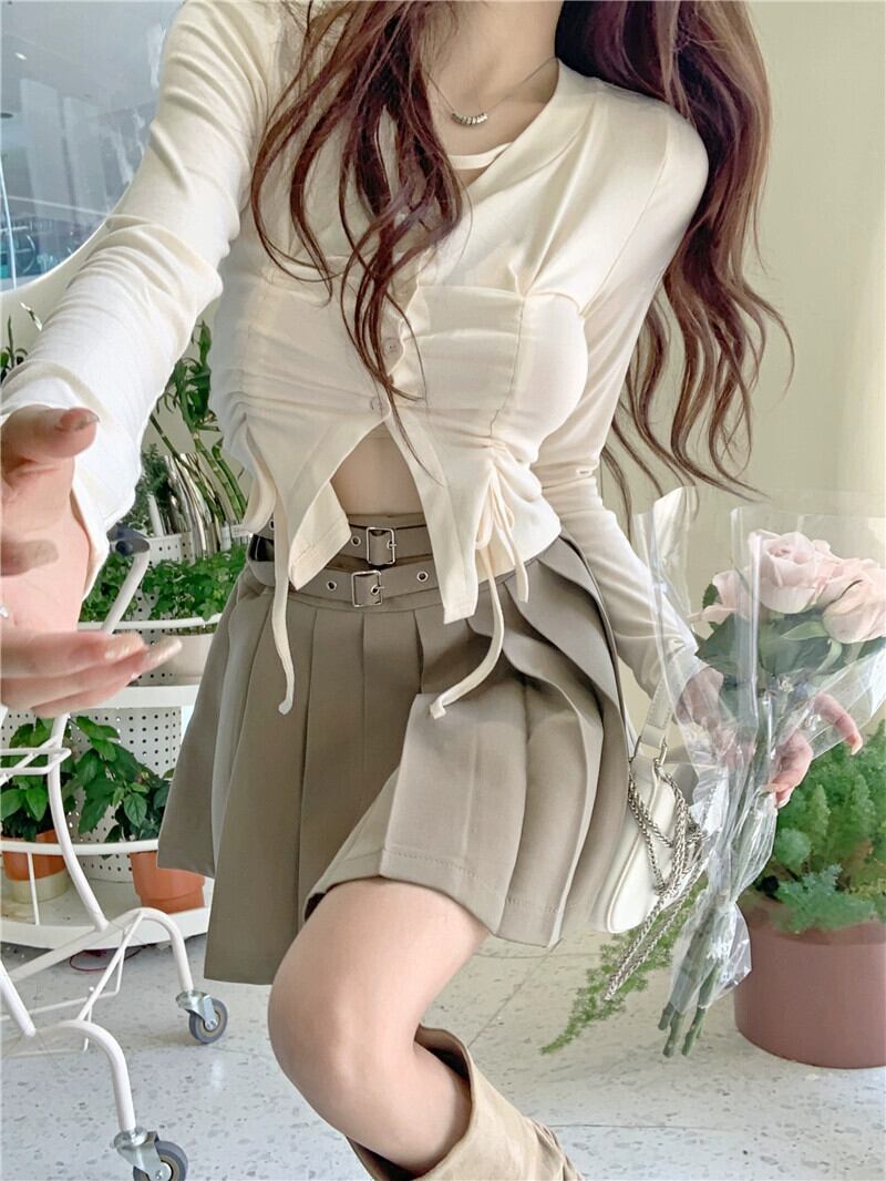 デザインセンスファッションスーツ女性 2023 春の新しい巾着ウエストトップスリムプリーツスカート 2 点セット スプリング 春物 0921982649763768