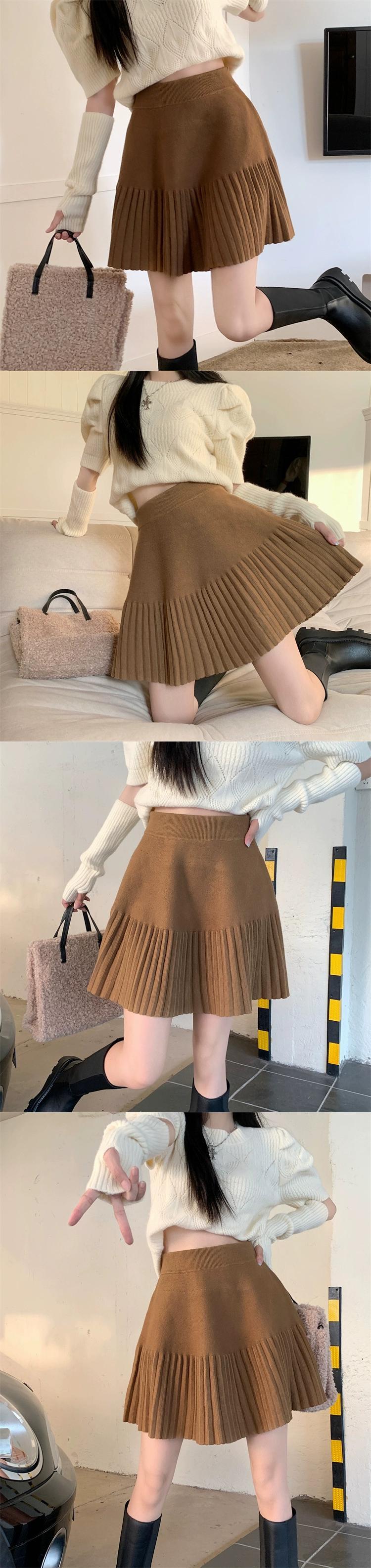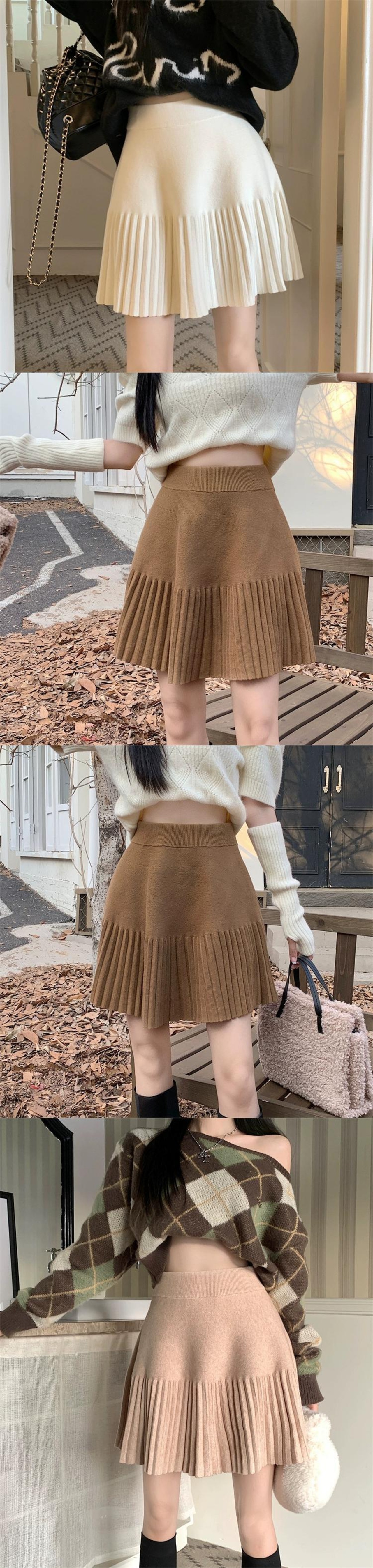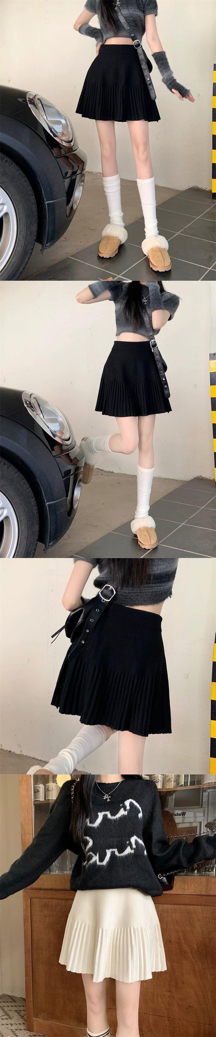 スパイス無地オールマッチニットスカート女性の春と秋 2023 新しいハイウエストルーズスリム A ラインプリーツスカート ハイウェスト スプリング 春物 オータム 秋物 Aライン ソリッドカラー 0921976089485584