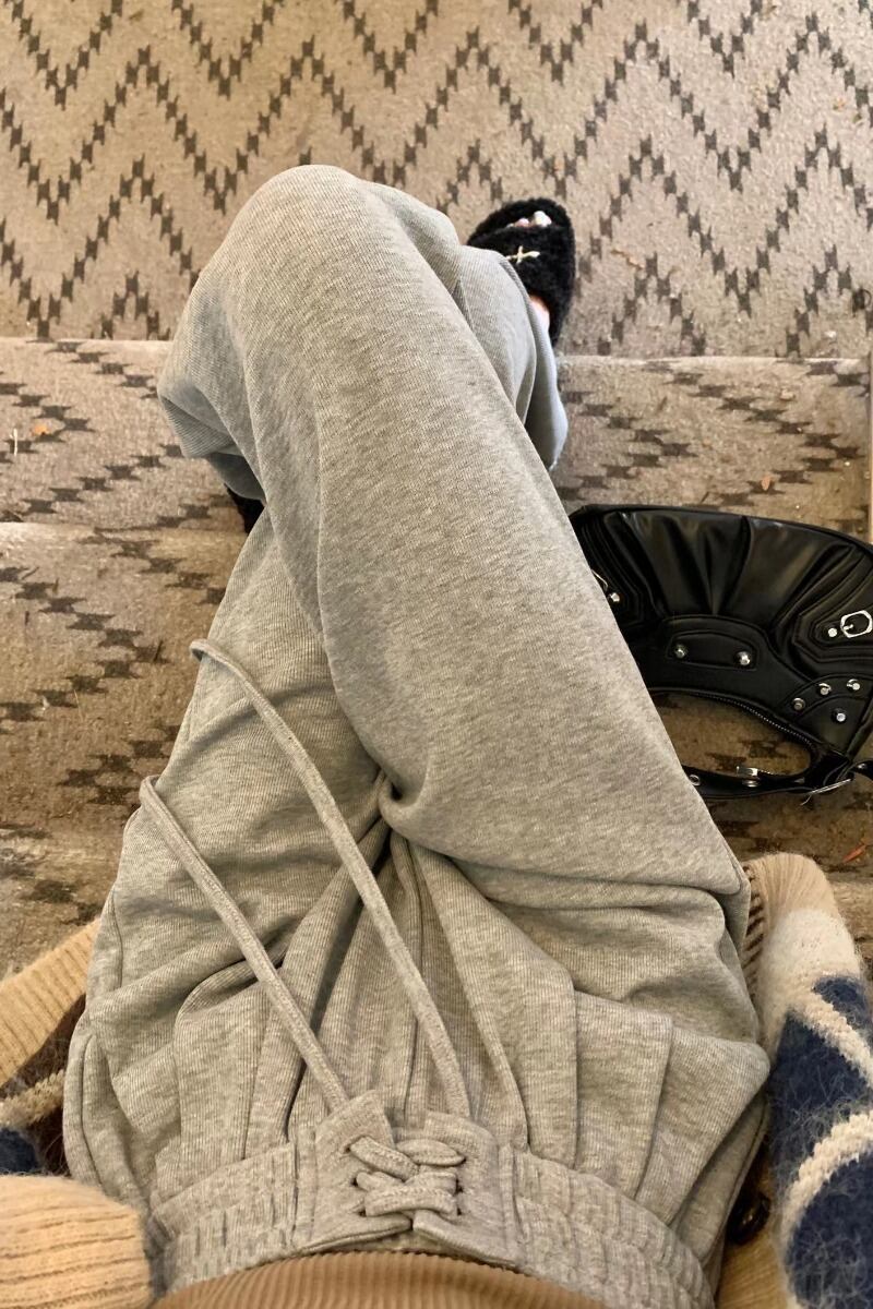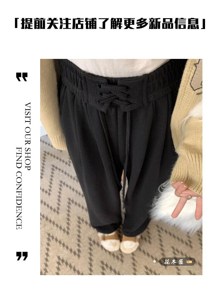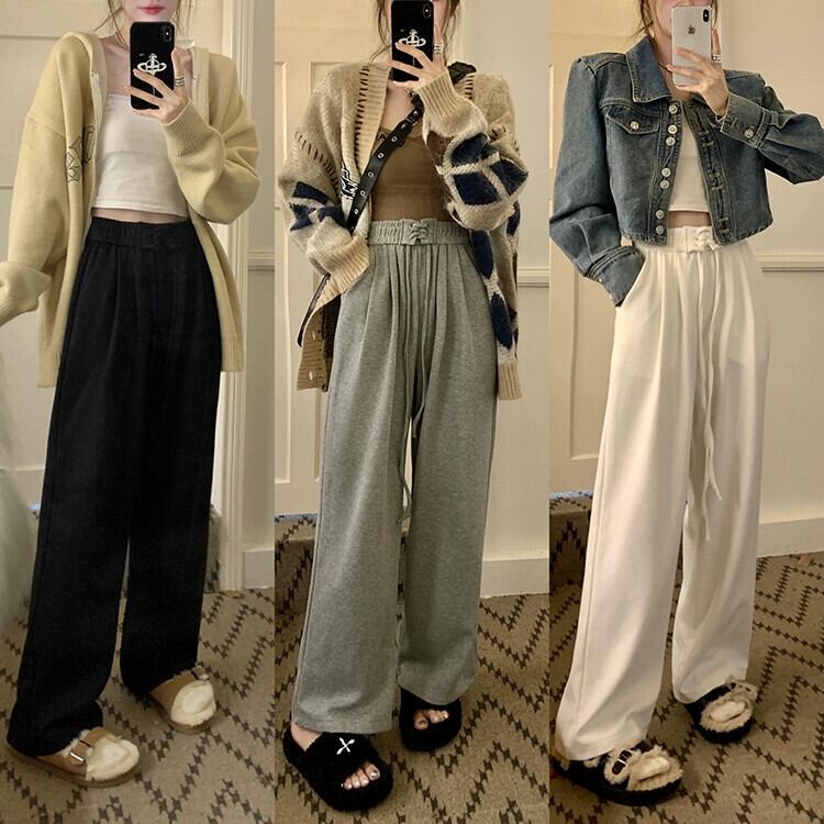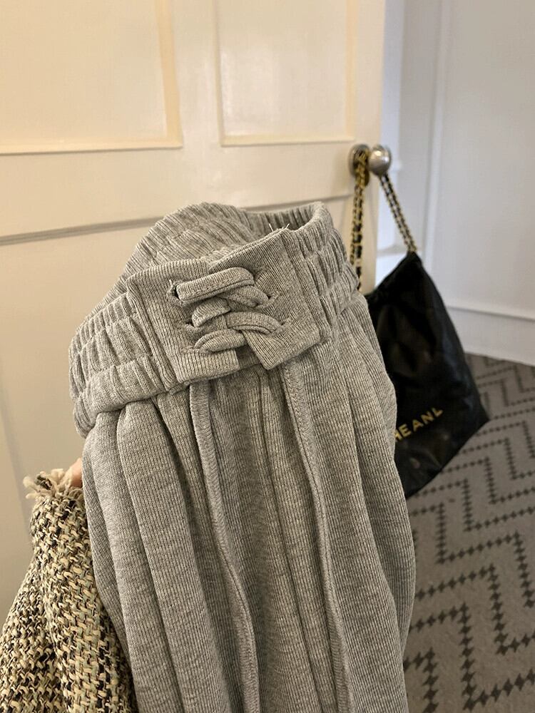 肥厚グレーワイドレッグスポーツカジュアルパンツ女性の春と秋 2023 新しいストラップハイウエスト痩身ルーズモップパンツ ハイウェスト スプリング 春物 オータム 秋物 0921944726877180