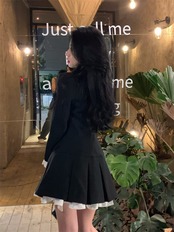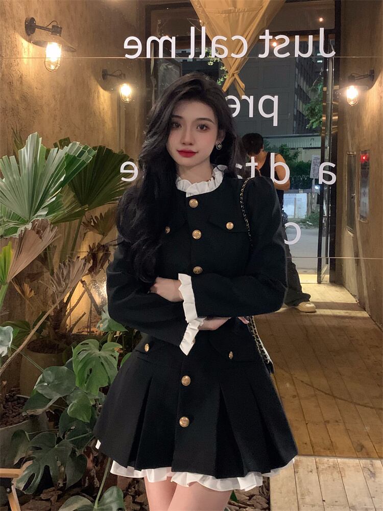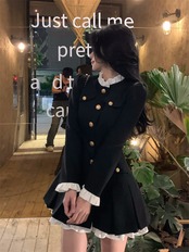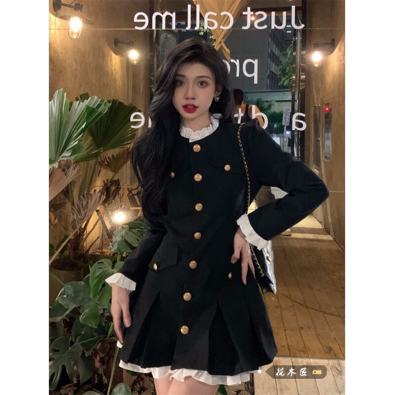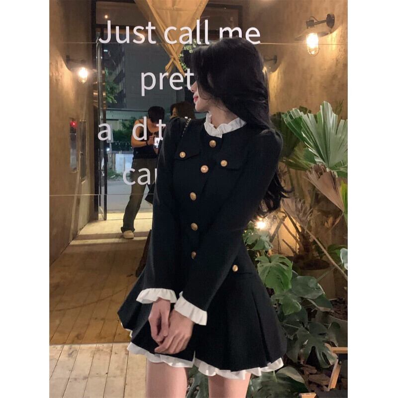 小さな香りの風甘いステッチレーススーツドレス女性の春 2023 新しいウエスト痩身気質リトルブラックドレス 大人ガーリー スウィート キュート カジュアル スプリング 春物 0921961157236905