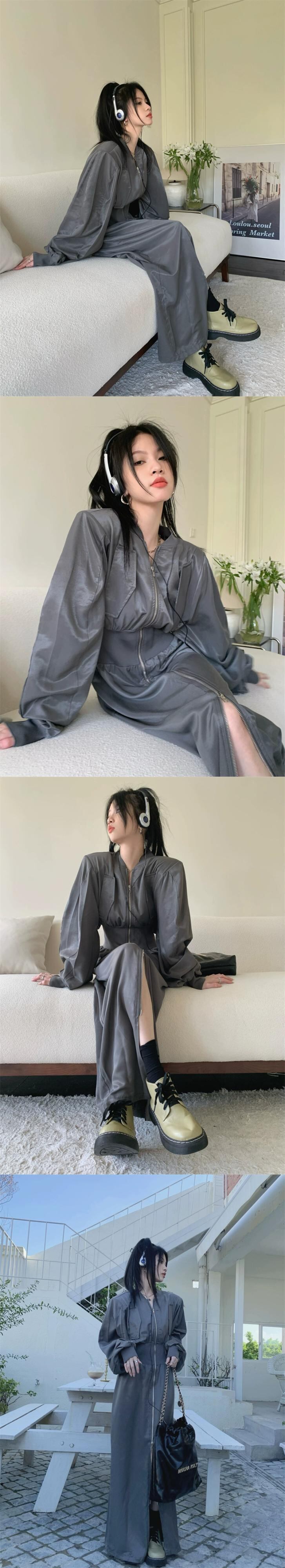 気質ニッチシックファッショナブルなスタンドアップウインドブレーカー女性 2023 春新バージョンミッドレングスファッション長袖ジャケット ロング スプリング 春物 0921927235584598