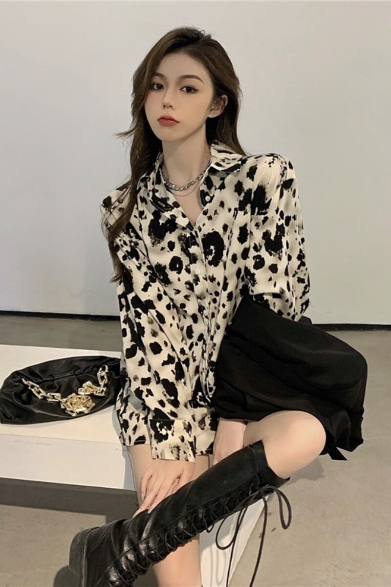 西洋風ヒョウ柄薄手長袖シャツレディース2023春秋新作オールマッチデザインセンスミドル丈シャツトレンドアウター ロング スプリング 春物 オータム 秋物 0921992754713705