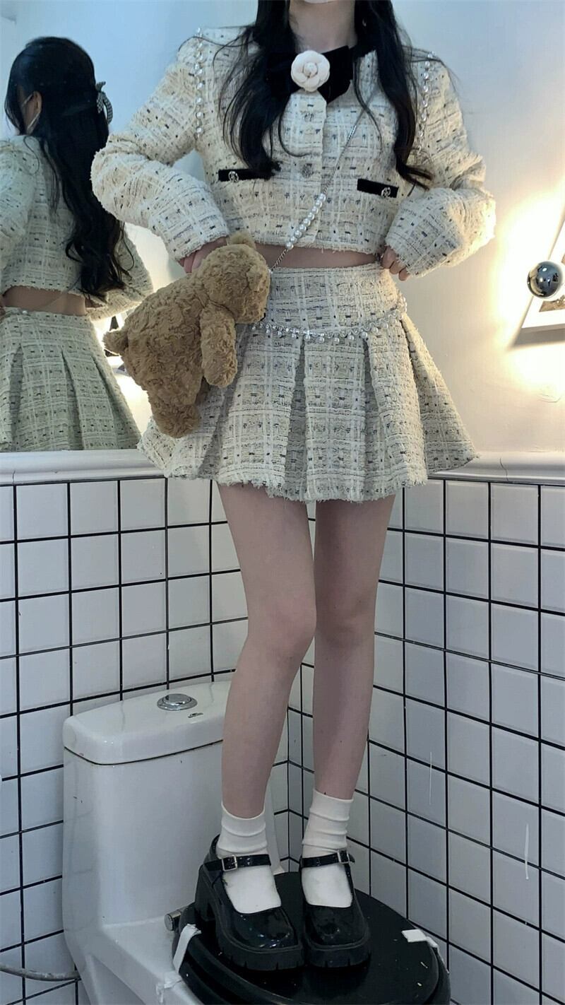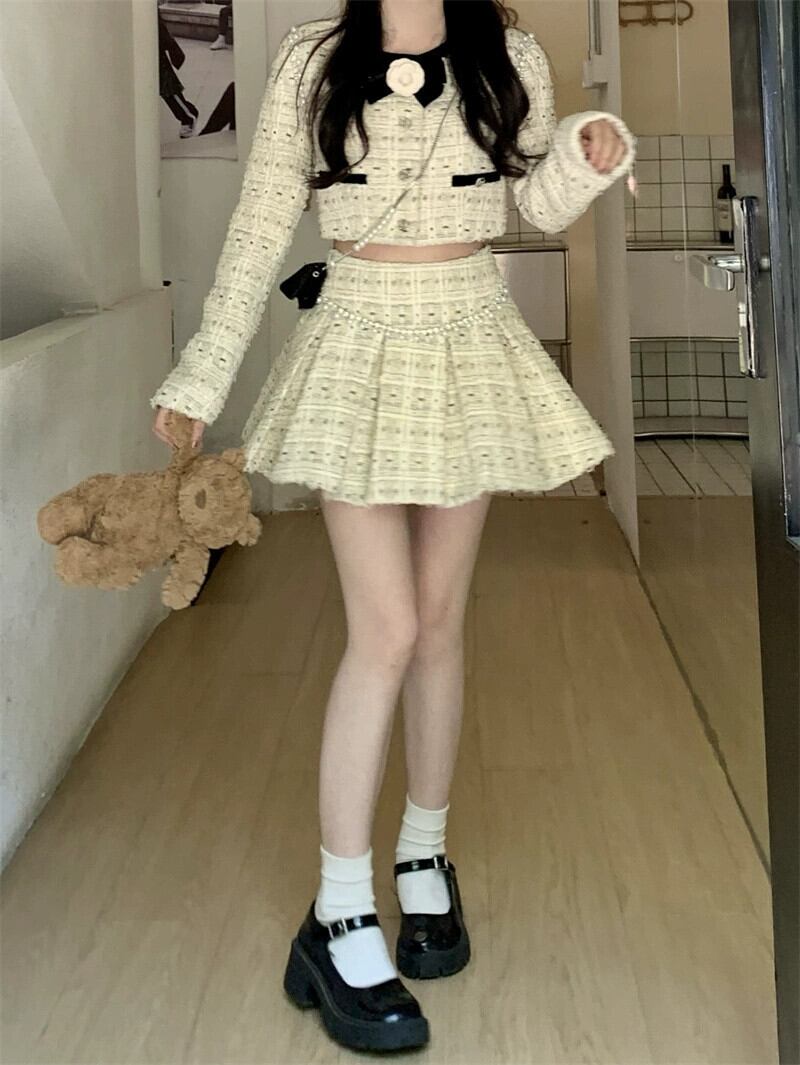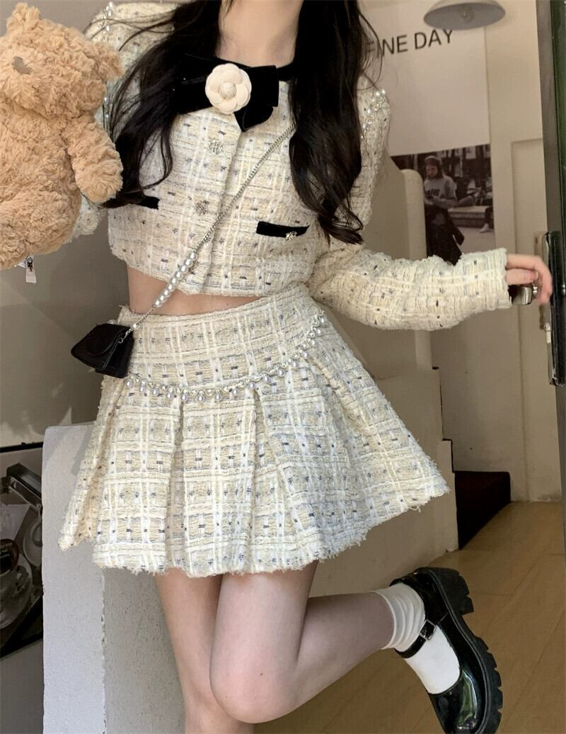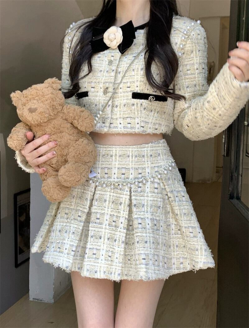 小香る風ウールコートレディース春スーツ気質セレブ高級感トップスツイードスカート2点セット スプリング 春物 0921936200047202