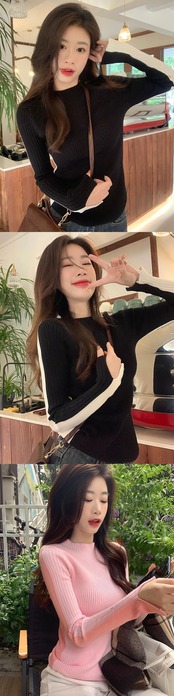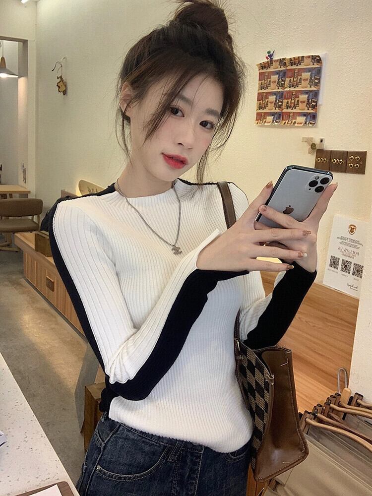 ネットレッド気質ハーフハイカラースリムフィットプルオーバーセーター女性の春と秋の 2023 新しいオールマッチボトリングシャツトップ スプリング 春物 オータム 秋物 0921932084567897