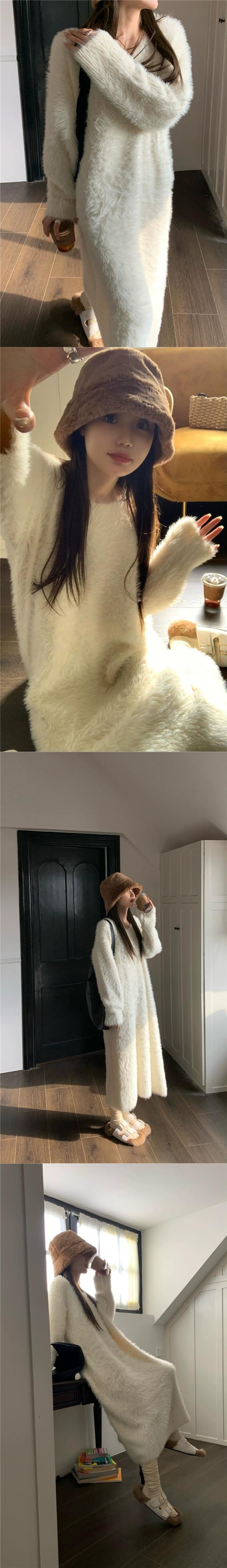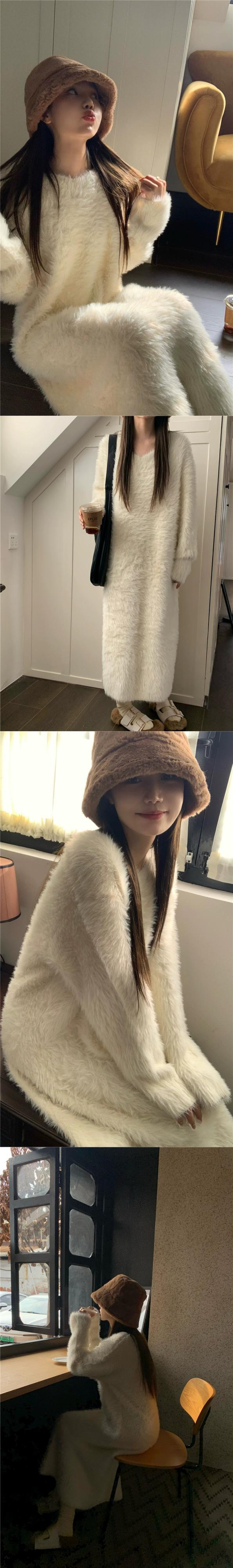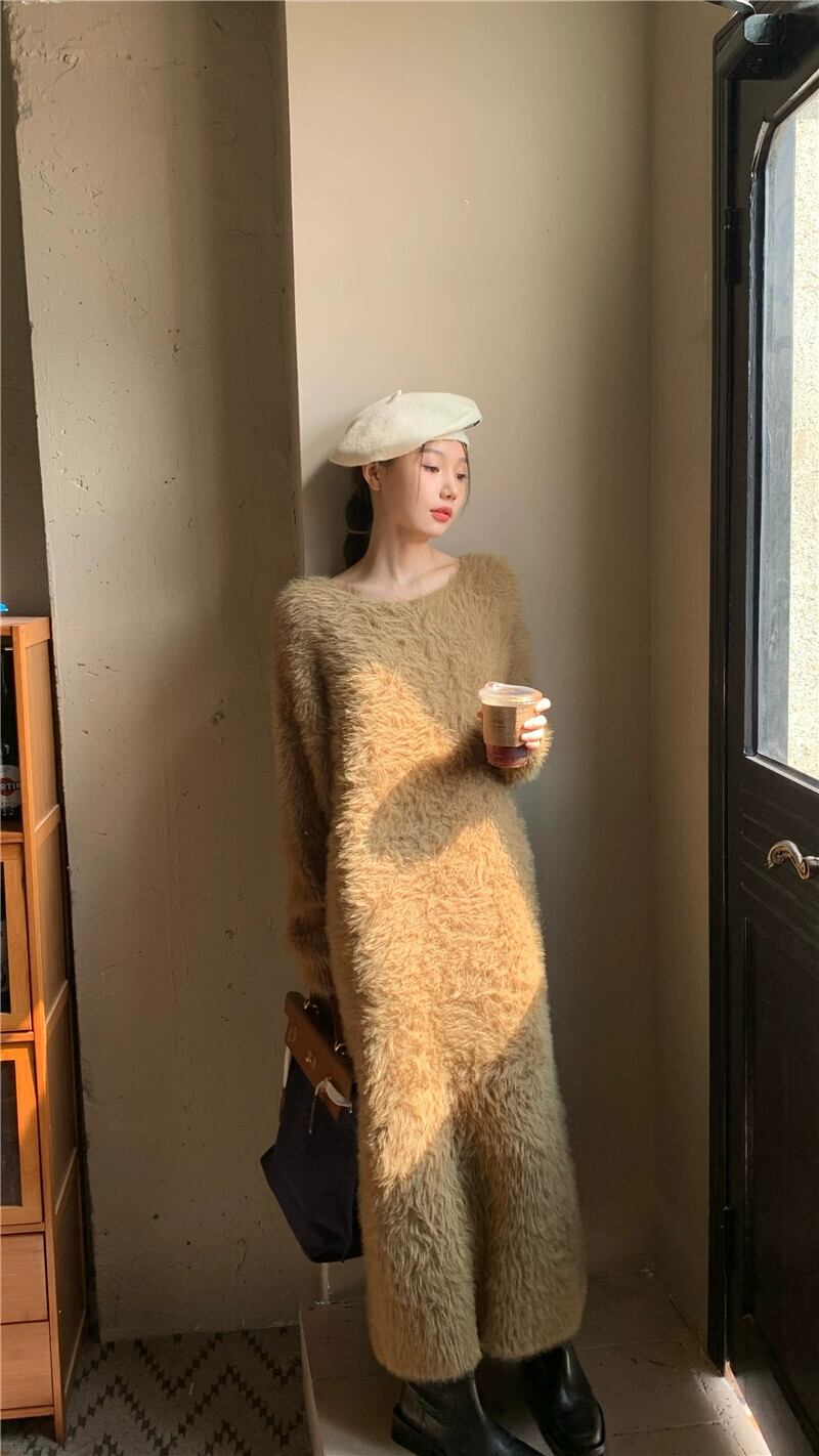 感覚模造ミンクウールニット長袖ドレス女性の春 2023 新しいソフトワックス状ルーズスリムロングスカート スプリング 春物 0921987526312858