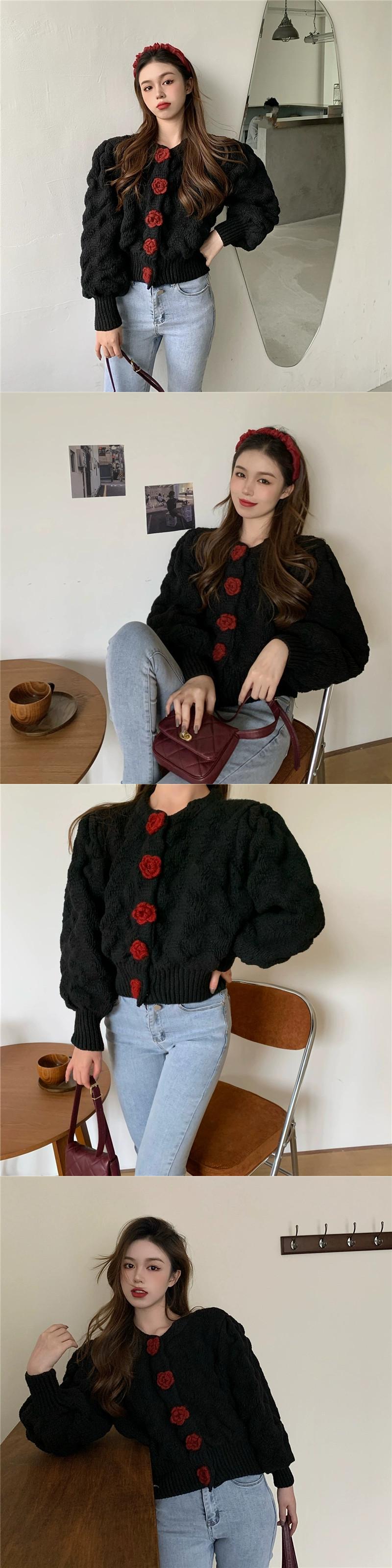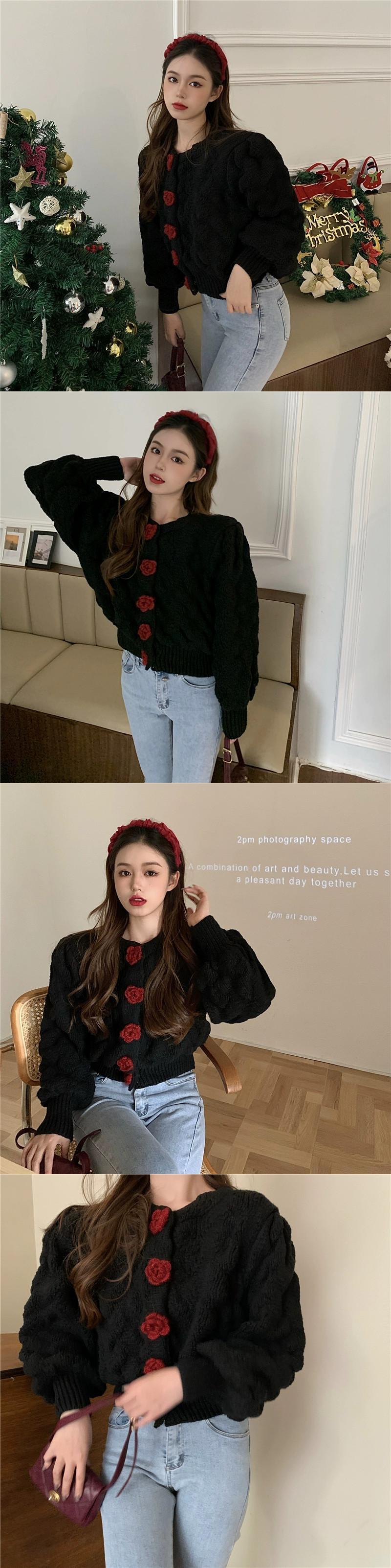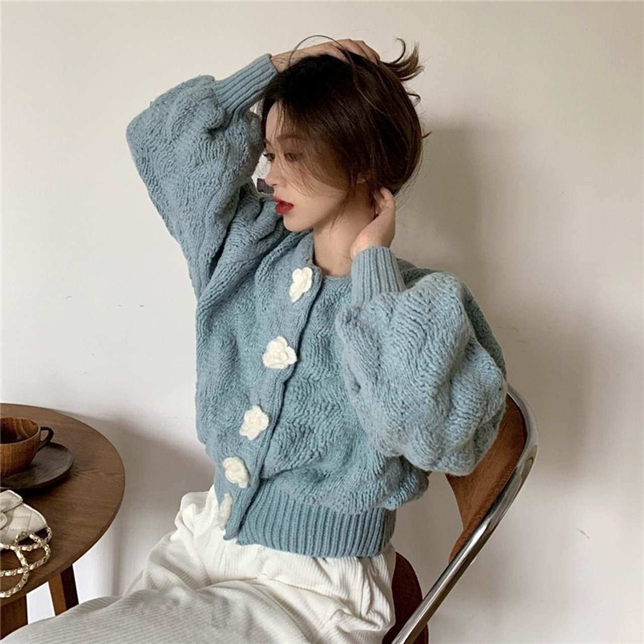 西洋風ツイスト立体花ショートセータージャケット女性の春と秋の 2023 新作ルーズニットカーディガントップ潮 スプリング 春物 オータム 秋物 フラワーデザイン 0921990031129738