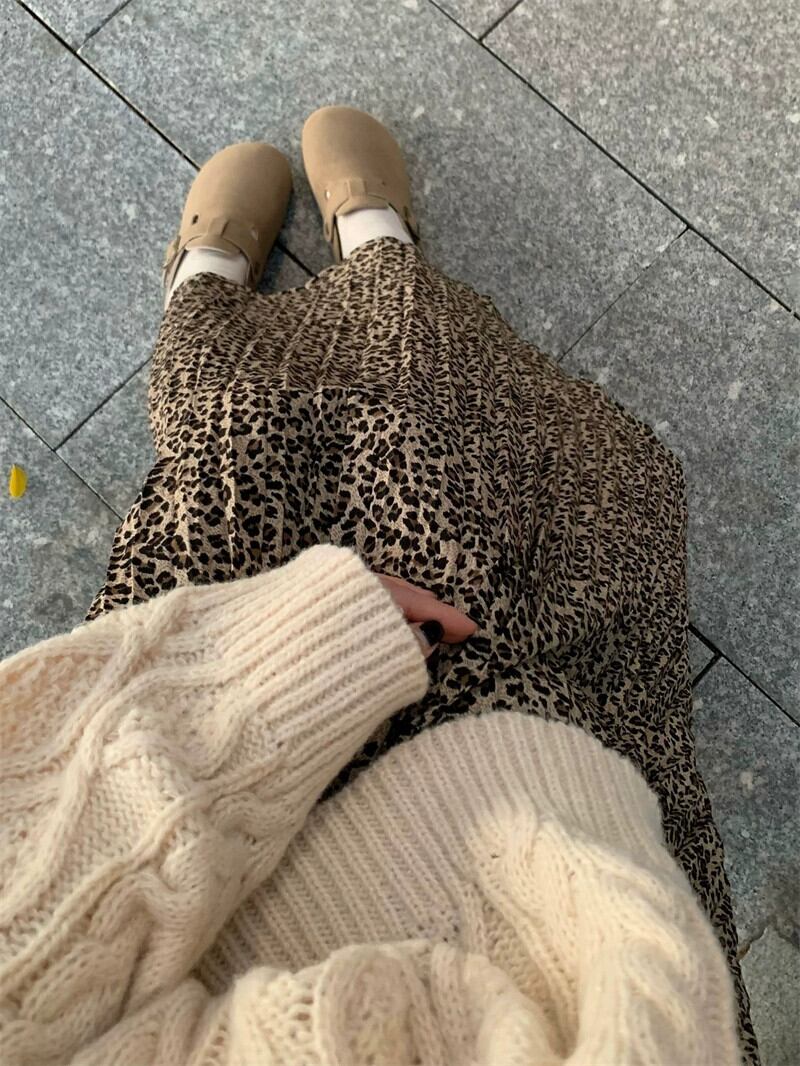 アメリカンレトロヒョウ柄弾性ハイウエストスリムスカートレディース2023春新作オールマッチルーズミドルスカート ハイウェスト エラスティック 伸縮 スプリング 春物 0921954077627897