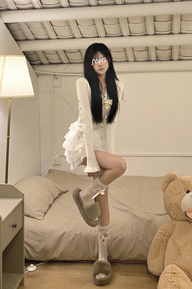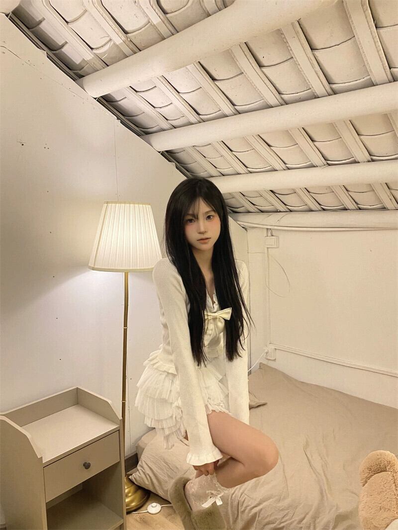 純粋な欲望スーツスカート女性ちょう結び長袖セータートップふわふわケーキスカートスカートスカート 2 点セット ロング リボン 0921999640296395