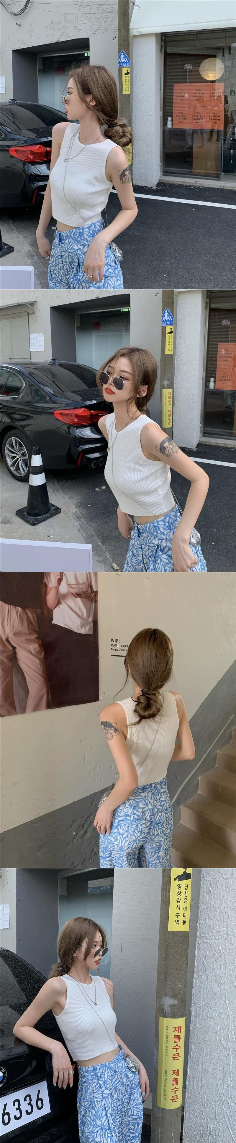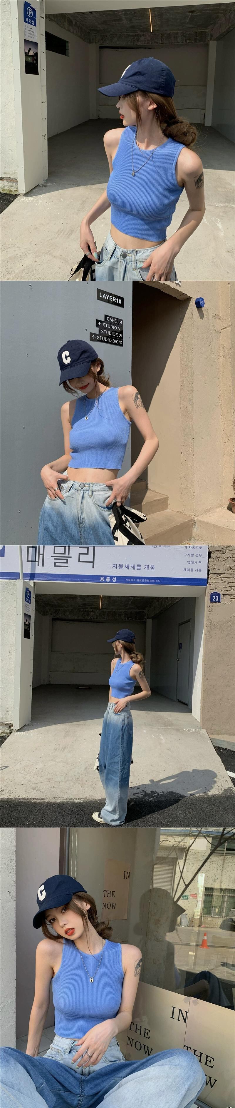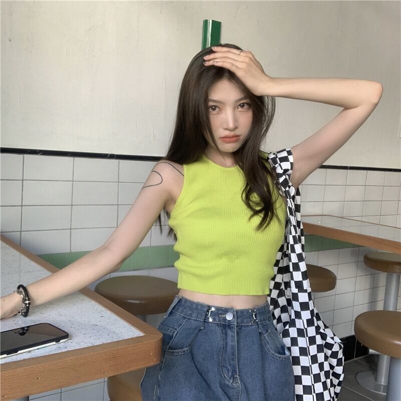 スパイスガールズ ショートセクションへそニットベスト婦人服 2023年夏バージョン スリムスリムノースリーブトップ サマー 夏物 0921940773207623
