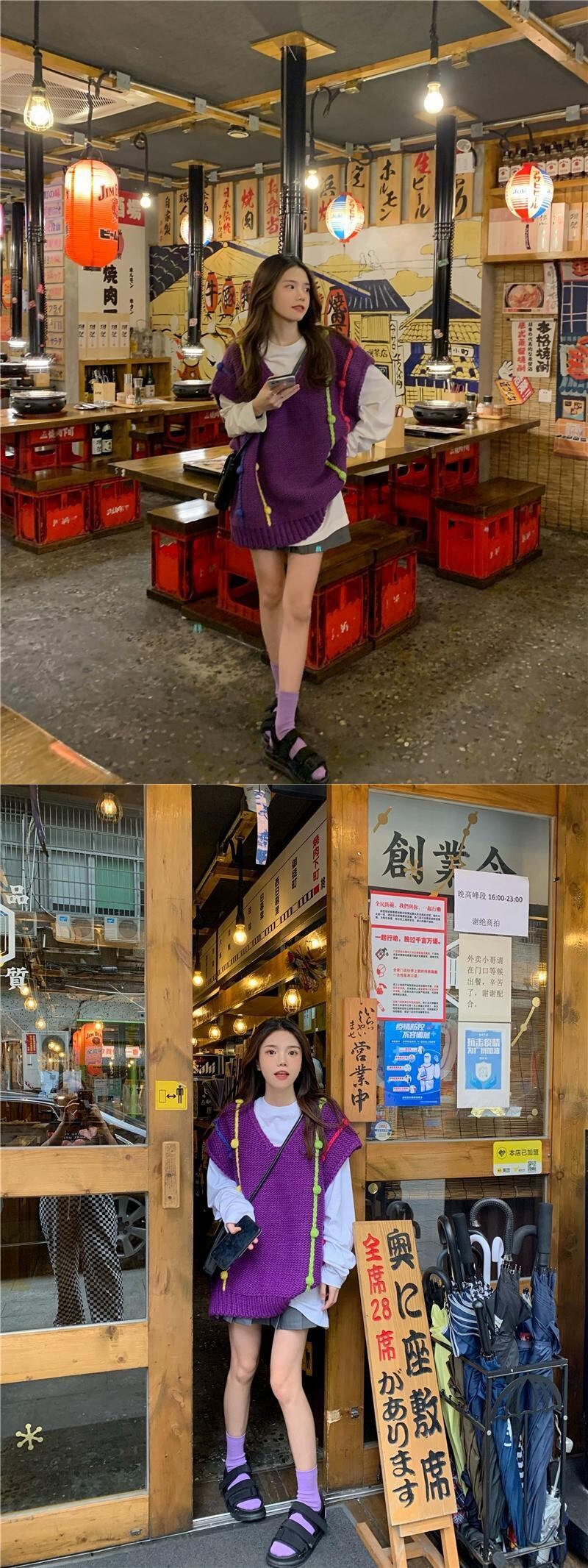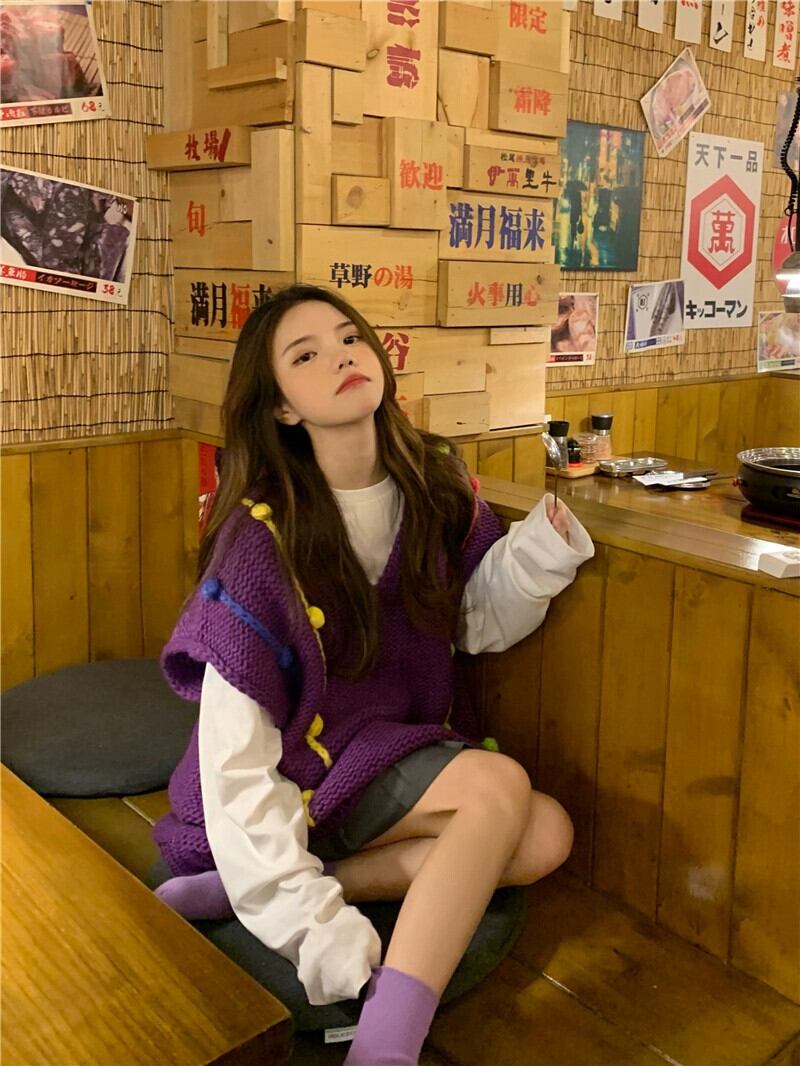 コントラストカラーと経年変化 V ネック カレッジ スタイル ニット ベスト レディース 2023 春の新作ジャカード ファーボール ルーズ オールマッチ ベスト スプリング 春物 Vネック 0921989428595308
