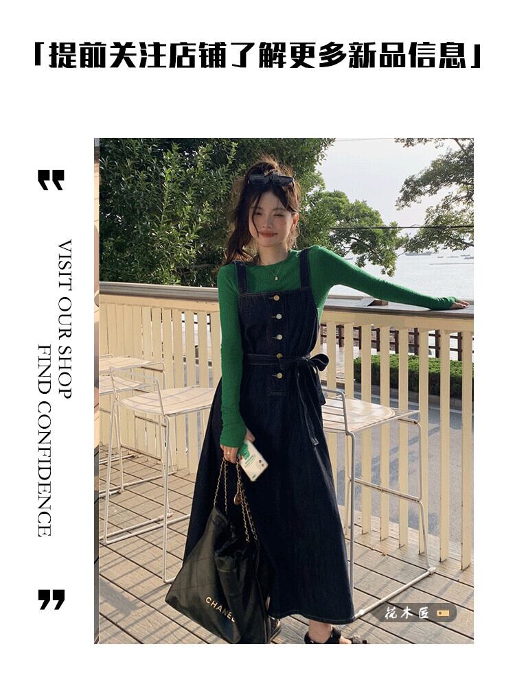 スタイルレトロネクタイウエストデニムサスペンダースカート女性春インレイヤードスカートルーズミッドレングスドレス レッド スプリング 春物 0921972890103886