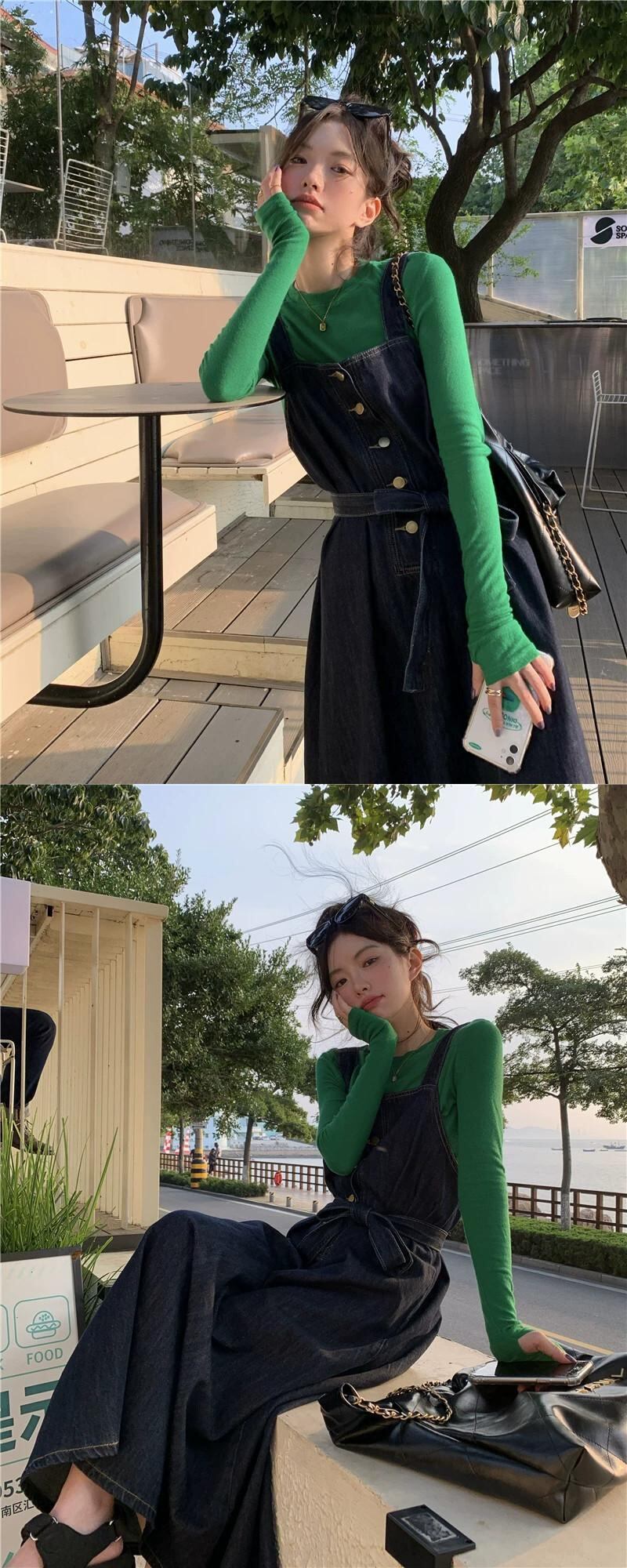 色:グリーンニットTシャツ,ブレストサスペンダースカート