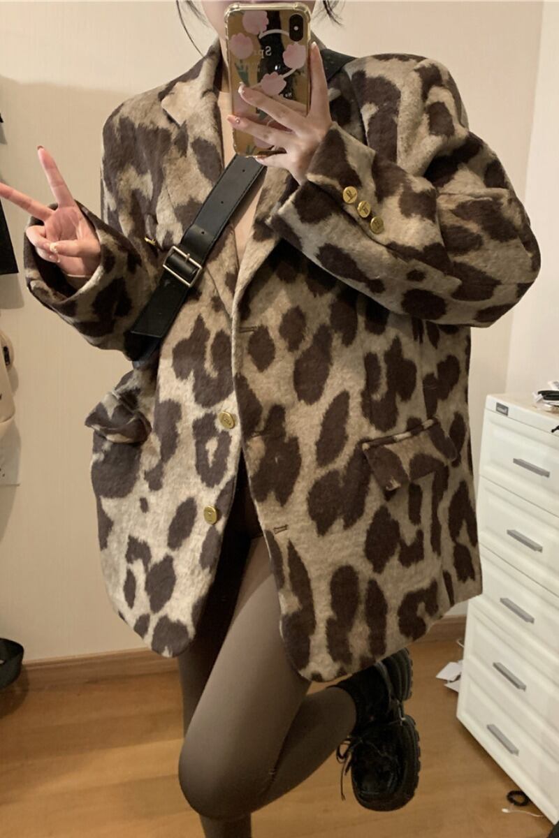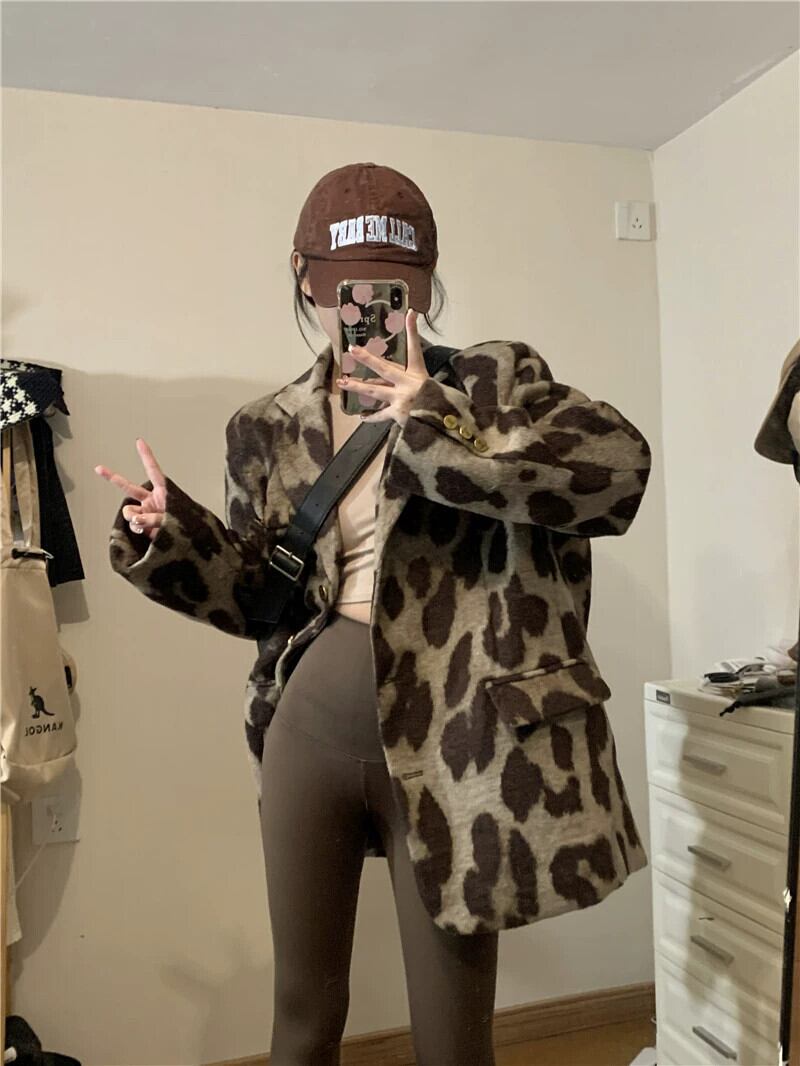-終わりレトロヒョウウールジャケット女性の春と秋の2023新しい気質スーツカラーミドル丈スーツジャケット スプリング 春物 オータム 秋物 0921926342778436