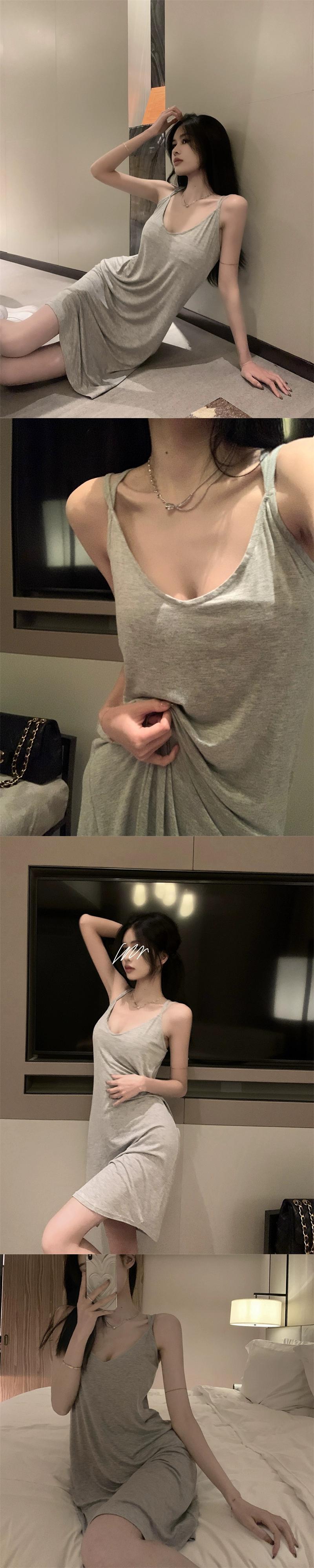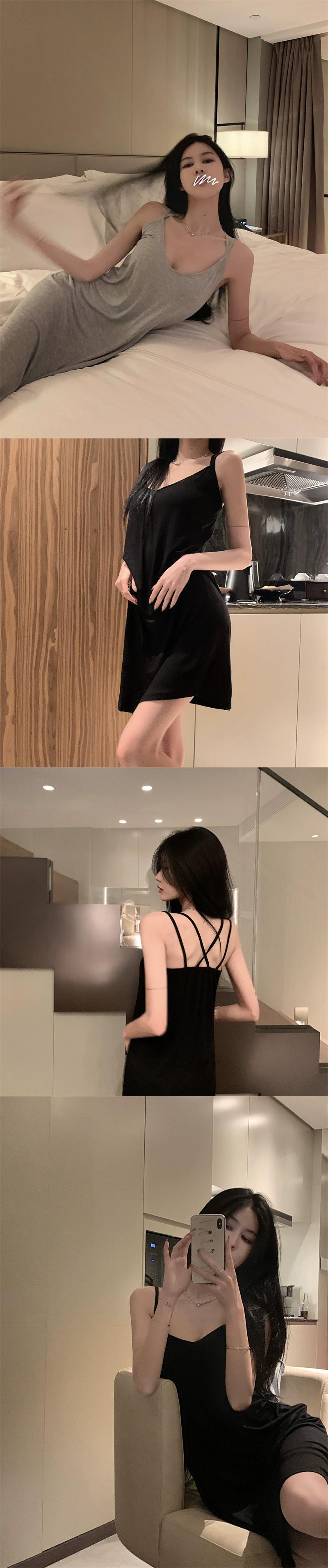 セクシーな背中の開いた無地サスペンダー寝間着女性の夏 2023 新しい痩身薄型ホームサービス純粋な欲望風ドレス サマー 夏物 ピュア ソリッドカラー 0921915094808296
