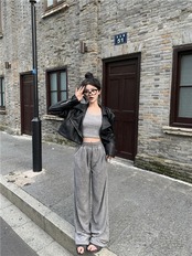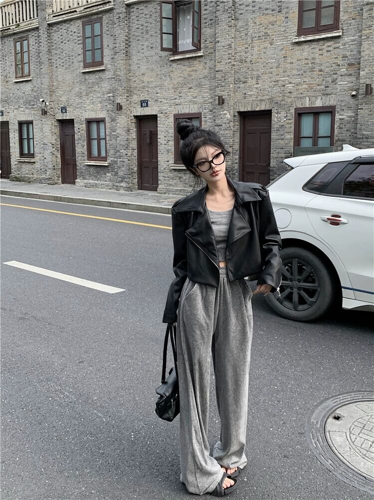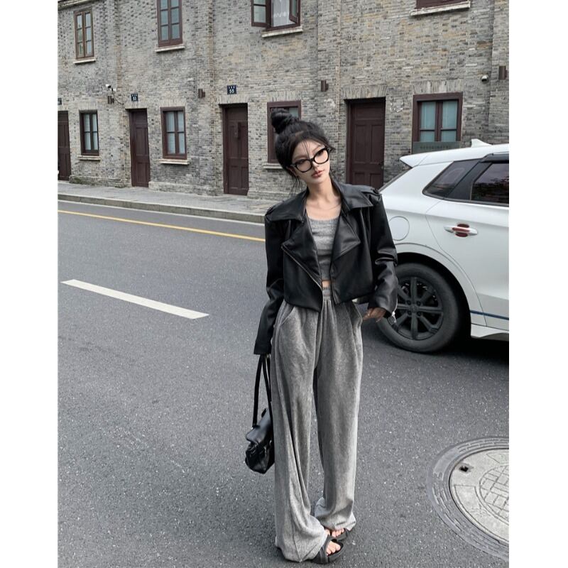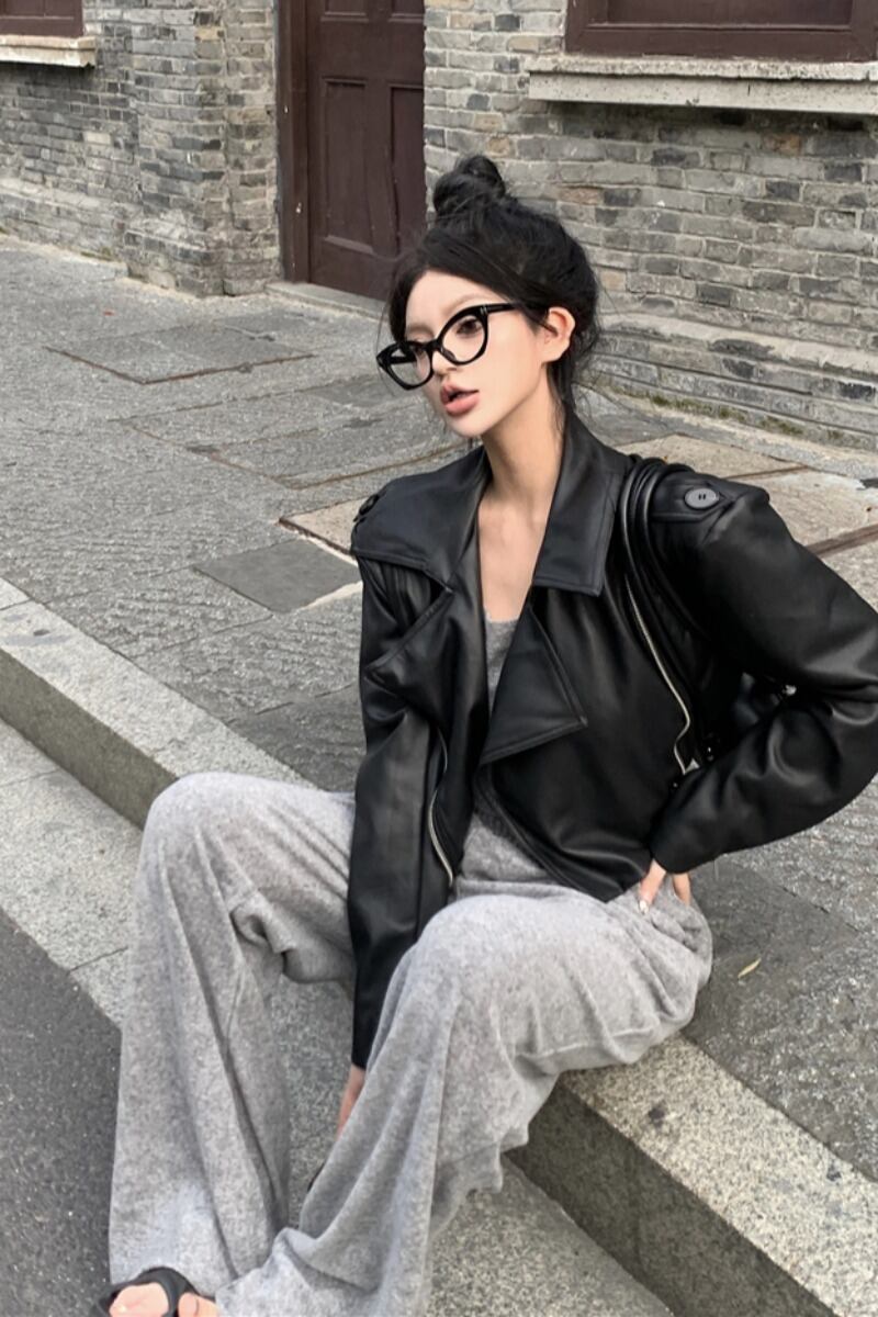 レトロでファッショナブルなブラックレザージャケットの女性の2023年春の新しいトレンディでクールなスタイル、ショートルーズバイクカーディガン スプリング 春物 0921952212938471