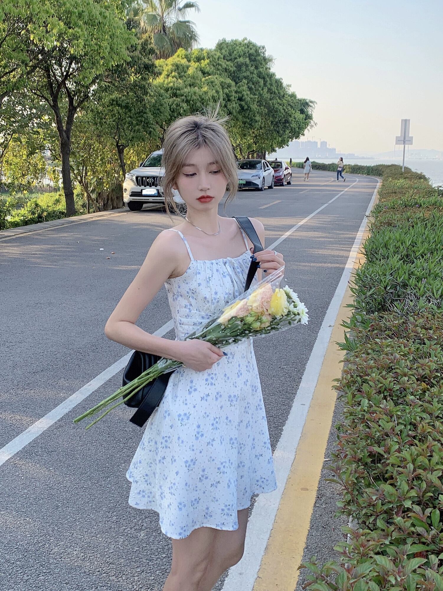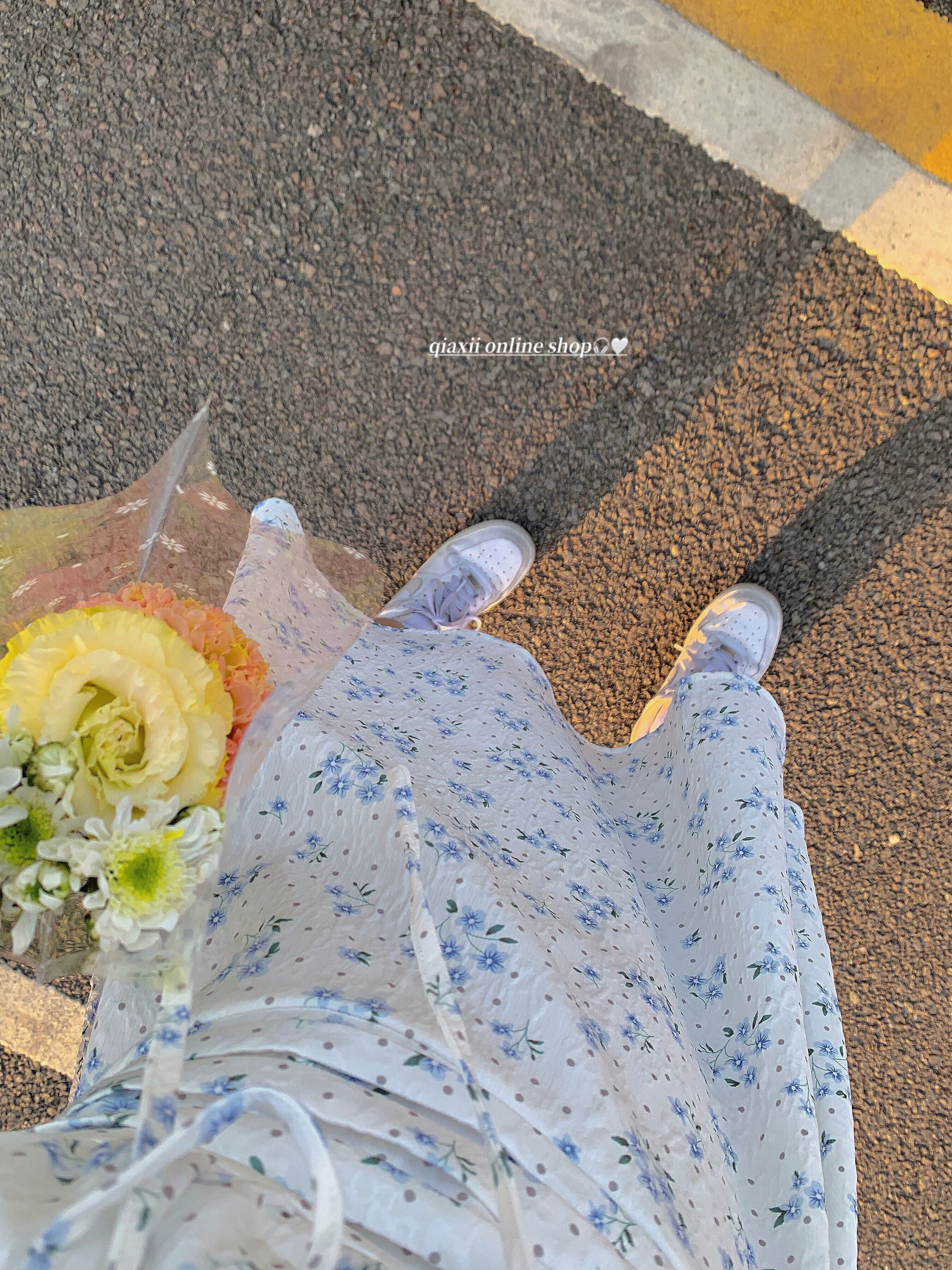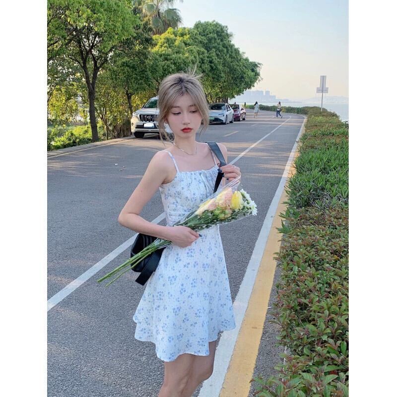 甘い小さな花柄スリングドレス女性の夏の気質ウエスト痩身底スカート初恋スカート 大人ガーリー スウィート キュート カジュアル サマー 夏物 0921910111559724