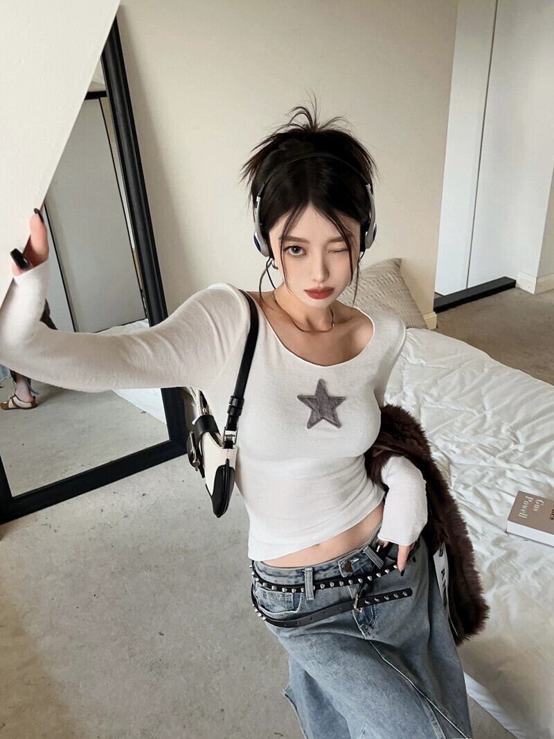スパイスニッチスター長袖Tシャツレディース2023春新作インナーボトリングシャツスリムフィットと薄手ショートトップ ロング スプリング 春物 0921978832198383