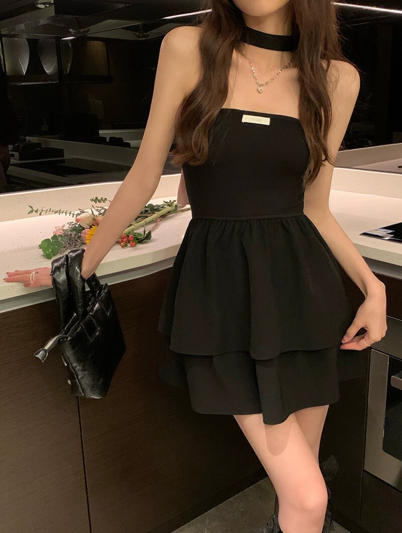 甘くてスパイシーなスタイル中空バックちょう結びドレスの女性の夏の 2023 新しいウエストウエスト痩身純粋な欲望ハンギングネックスカート リボン 大人ガーリー スウィート キュート カジュアル サマー 夏物 ピュア 0921972906070995