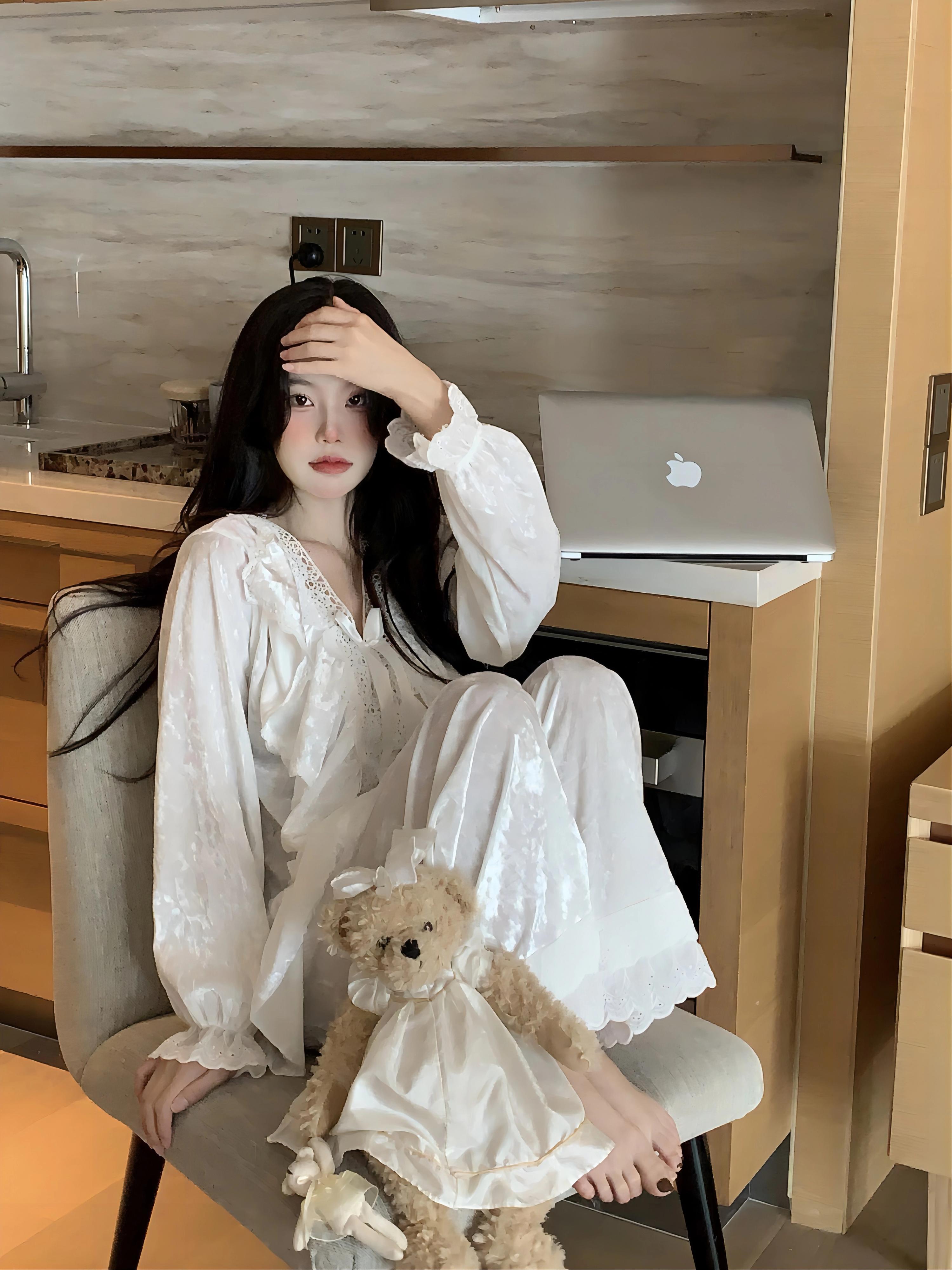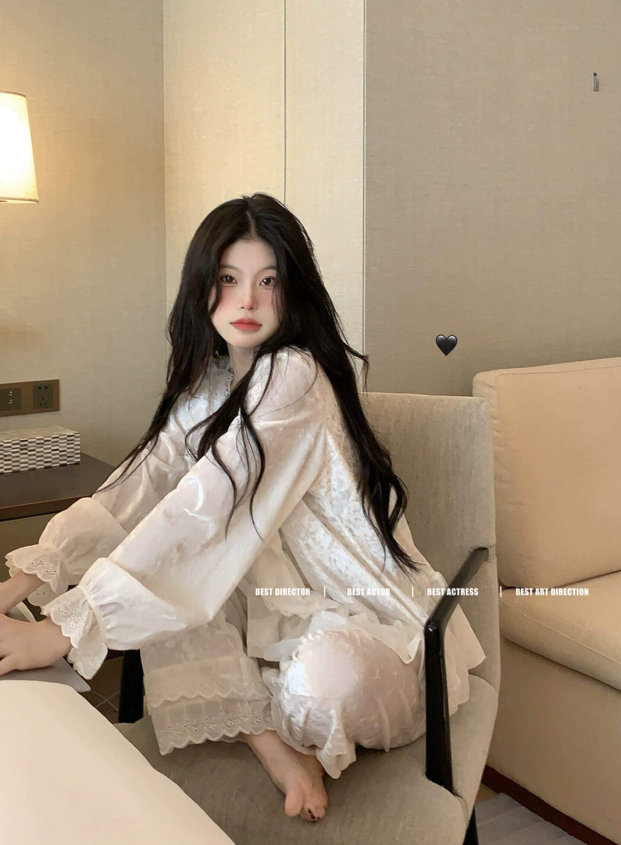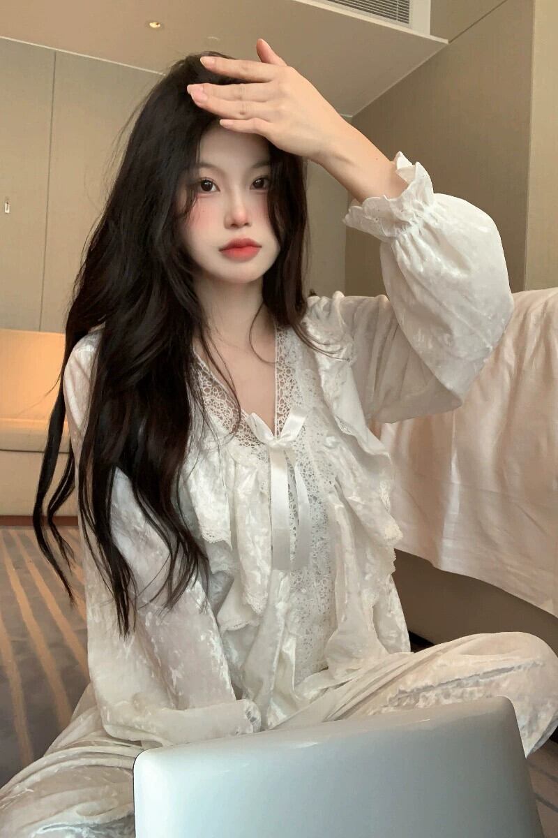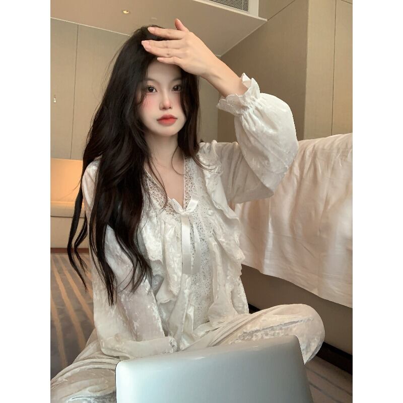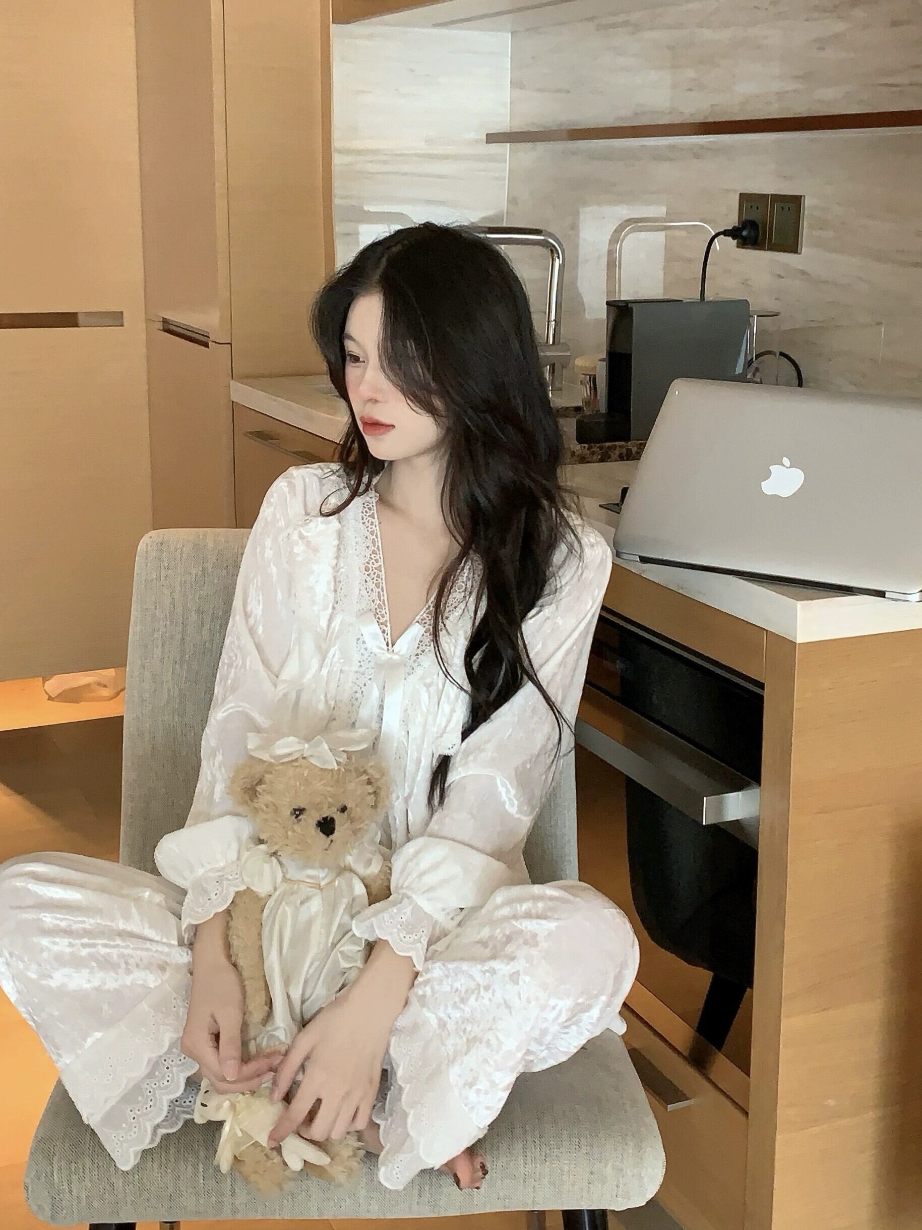 優しくて甘いレースパジャマセット 2023年春 トップスパジャマ ベルベット ホーム 2点セット 大人ガーリー スウィート キュート カジュアル スプリング 春物 092194278598555