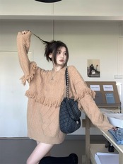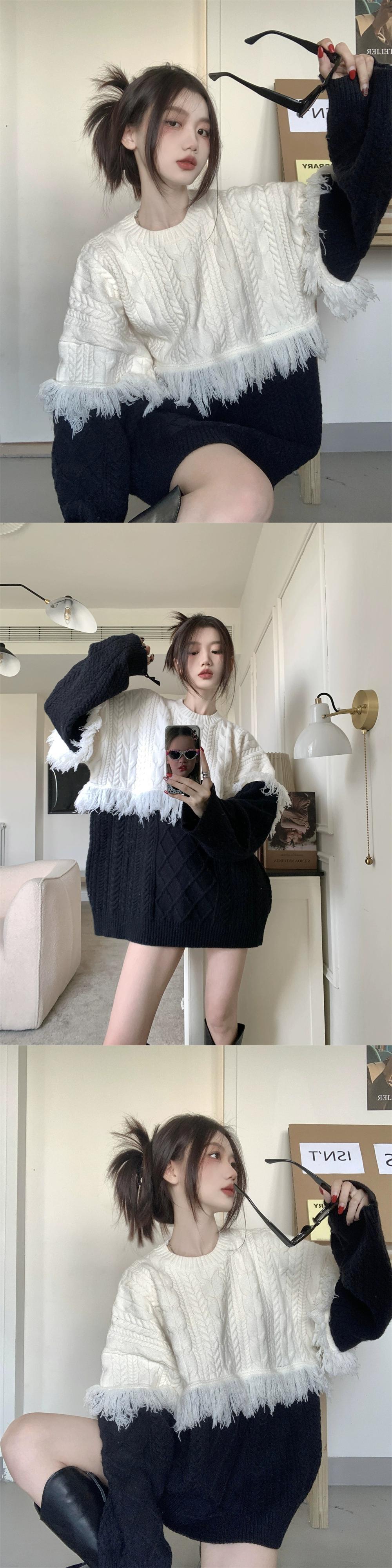 バージョンのテルステッチルーズプルオーバーセーター女性の春 2023 新しいオールマッチ怠惰な風ミッドレングスニットセーター スプリング 春物 0921992347595419