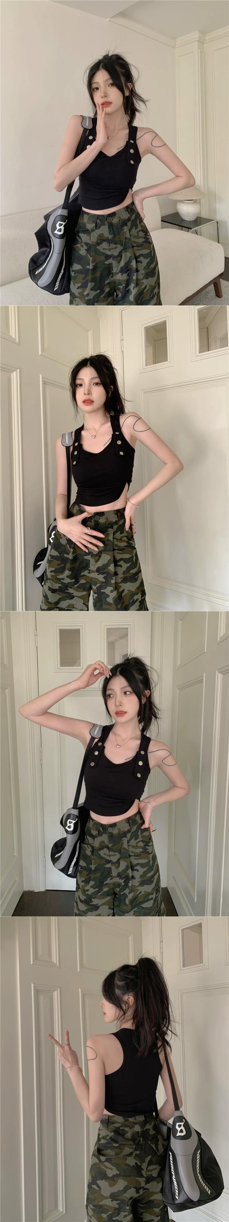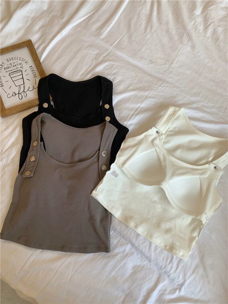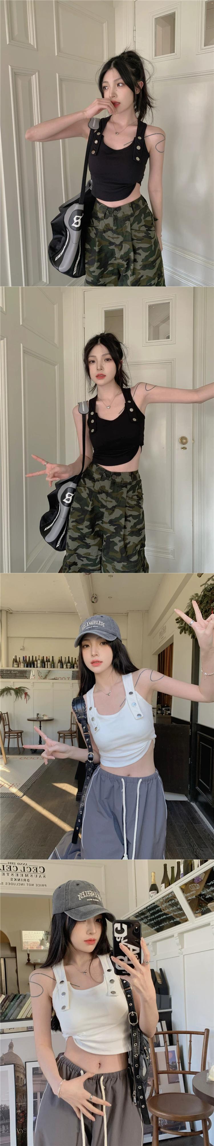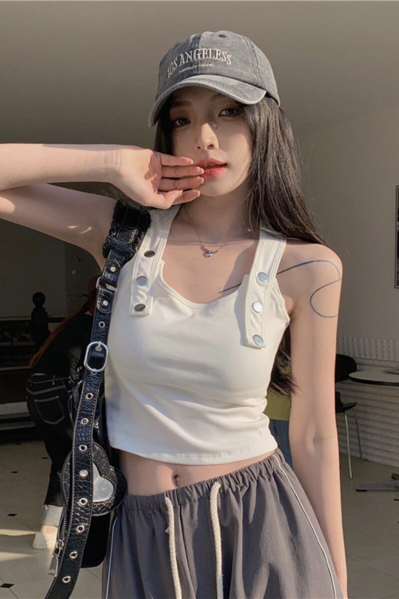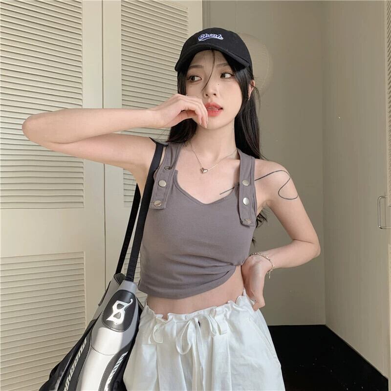 スイートクールファッションキャミソール女性 2023 春の新作 ins 胸パッドショートノースリーブトップ 半袖 ハーフスリーブ 大人ガーリー スウィート キュート カジュアル スプリング 春物 0921933011697987