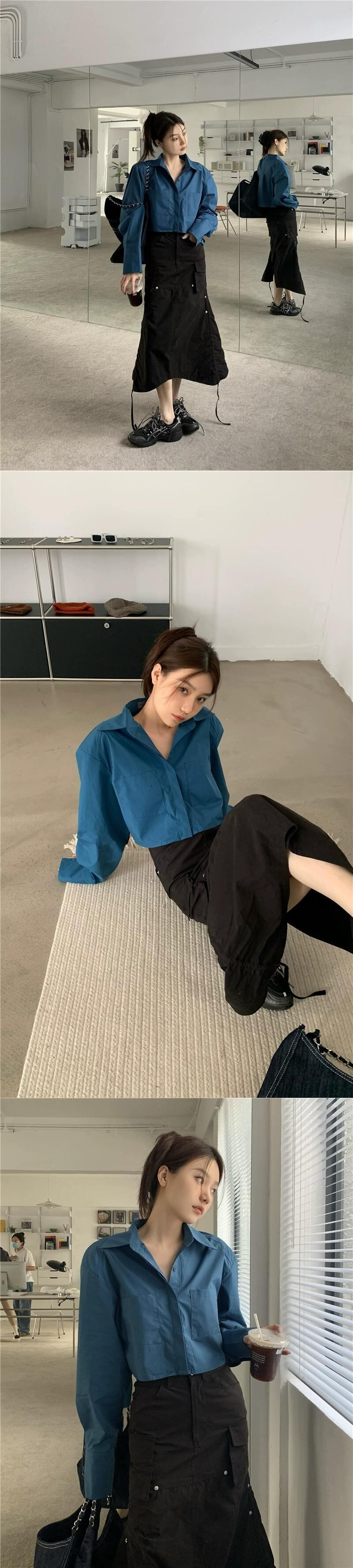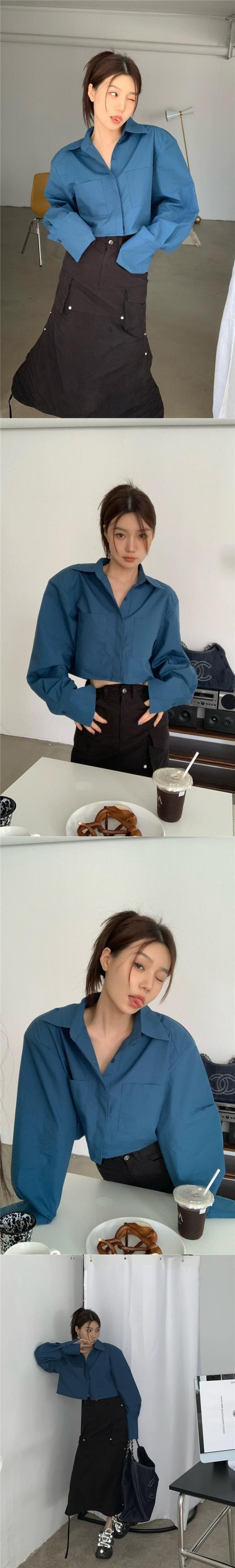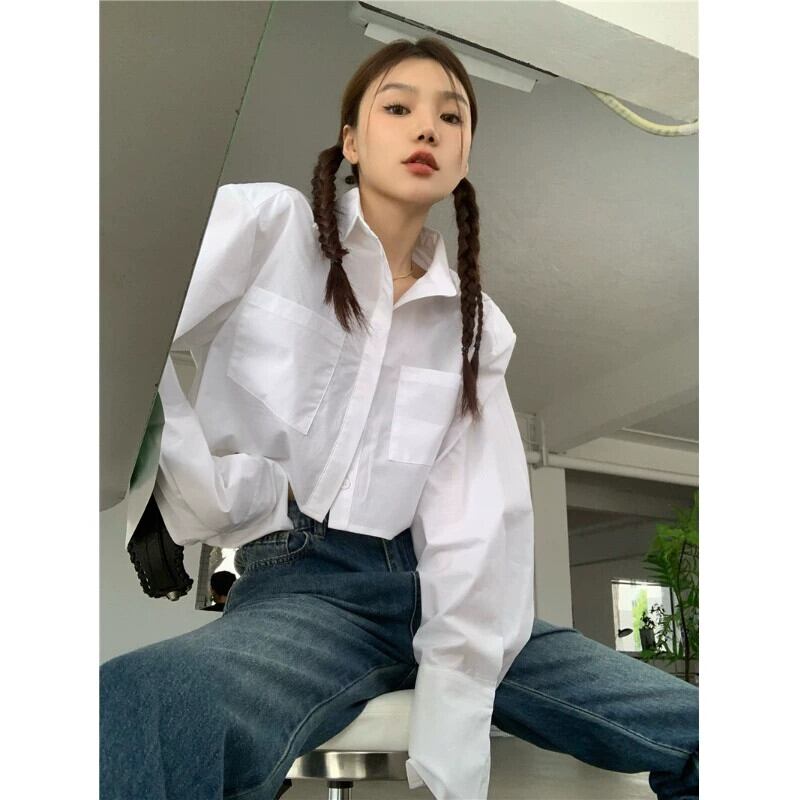 センスダブルポケットショルダーパッドシャツ女性の夏 2023 新しいルーズショートシャツ長袖ラペルトップ ロング サマー 夏物 0921939575992632