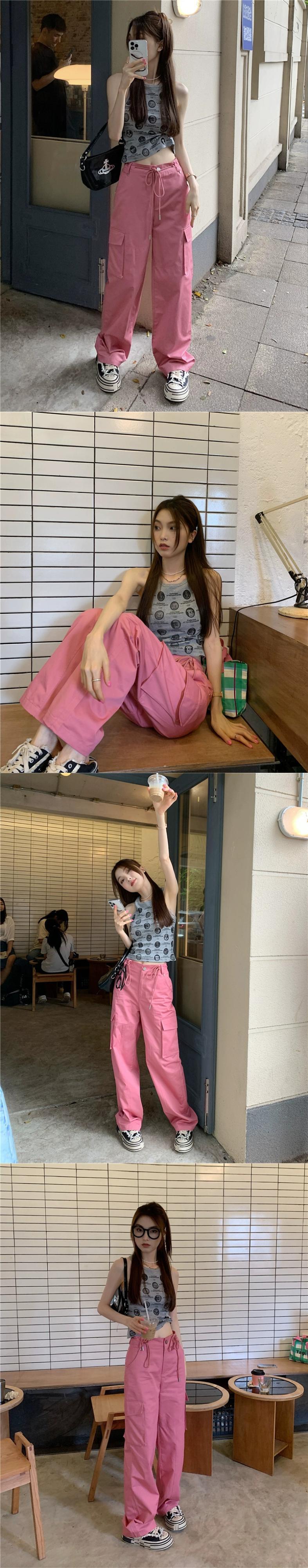 ピンクインハイストリートカジュアルオーバーオールレディース春デニムパンツハイウエストルーズワイドレッグパンツトレンディ ハイウェスト スプリング 春物 ワイドパンツ 092198672439625