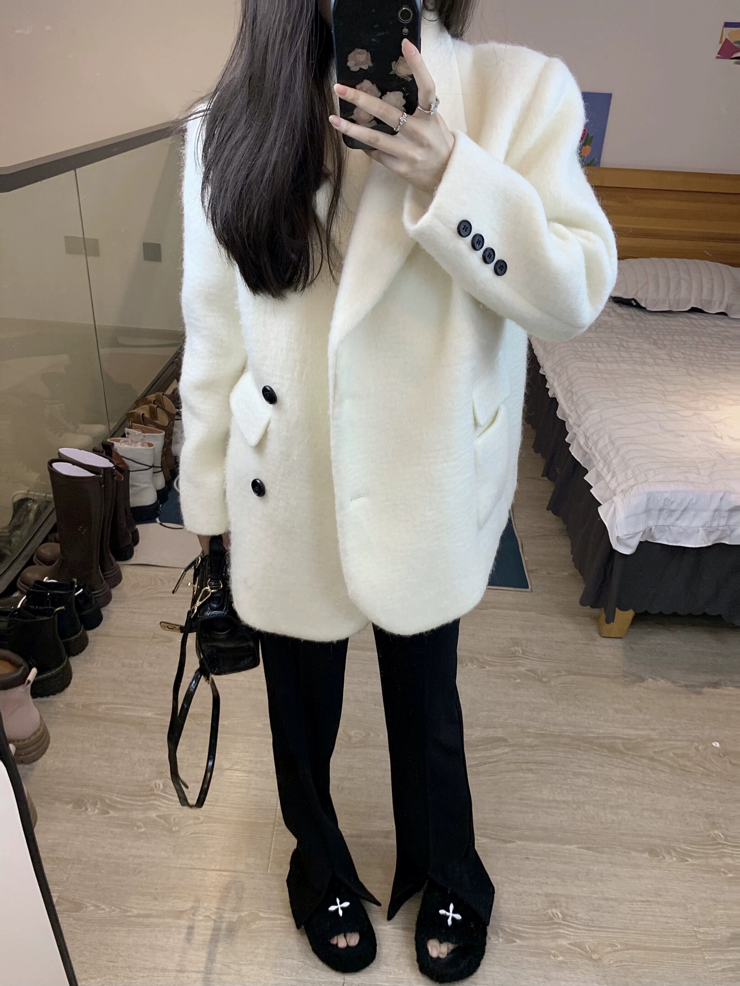 有名人 Xiaoxiangfeng 白肥厚スーツウールコート女性の春と秋 2023 新しいルースソフトワックスウールコート ホワイト スプリング 春物 オータム 秋物 0921981660371209