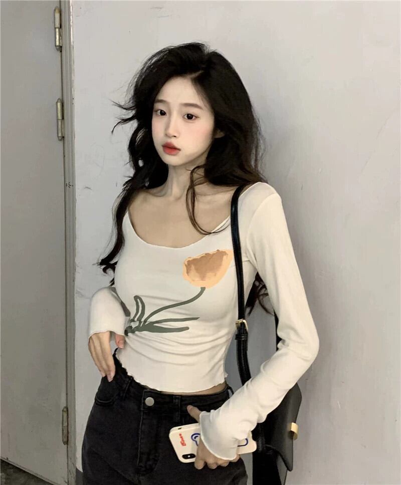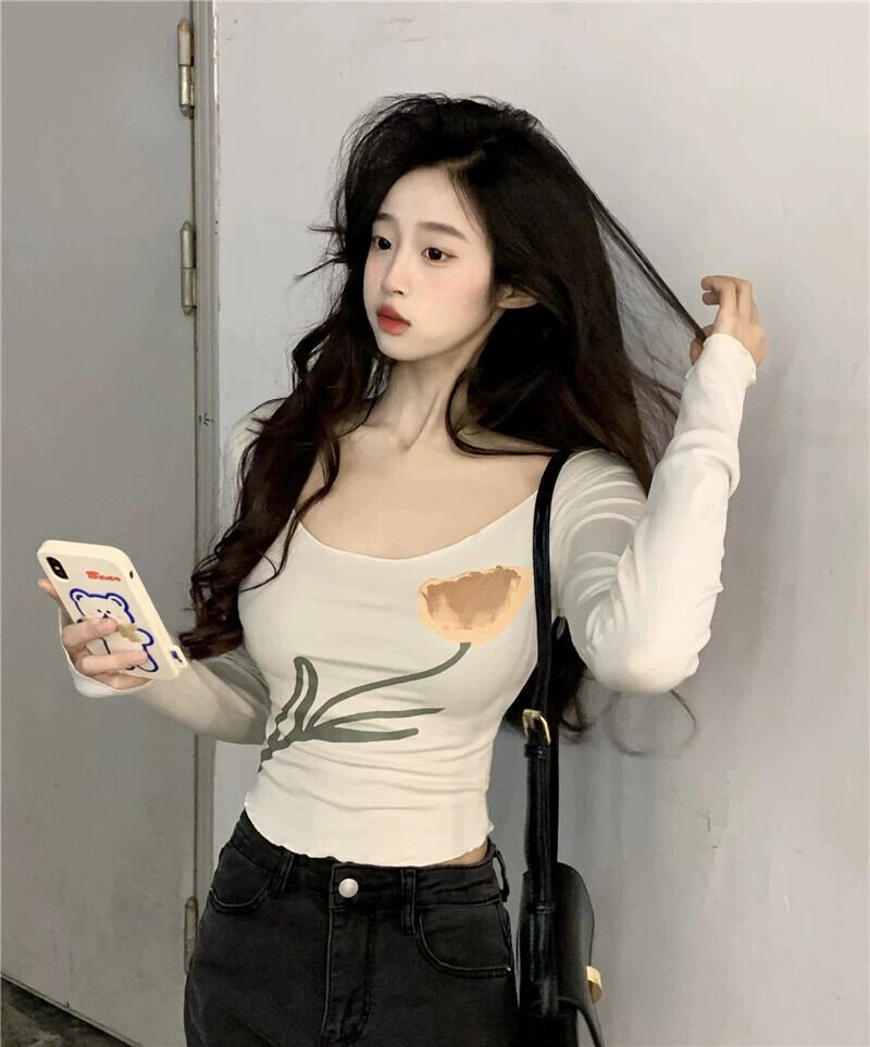 デザインセンスのバージョンのプリント長袖Tシャツレディース2023春の新作ファッションオールマッチスリムスリムボトムストップ ロング スプリング 春物 0921994956075643