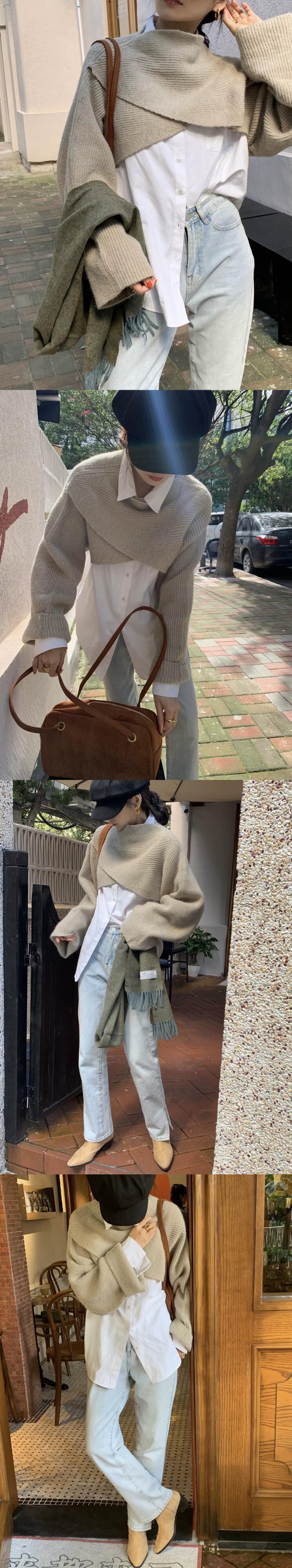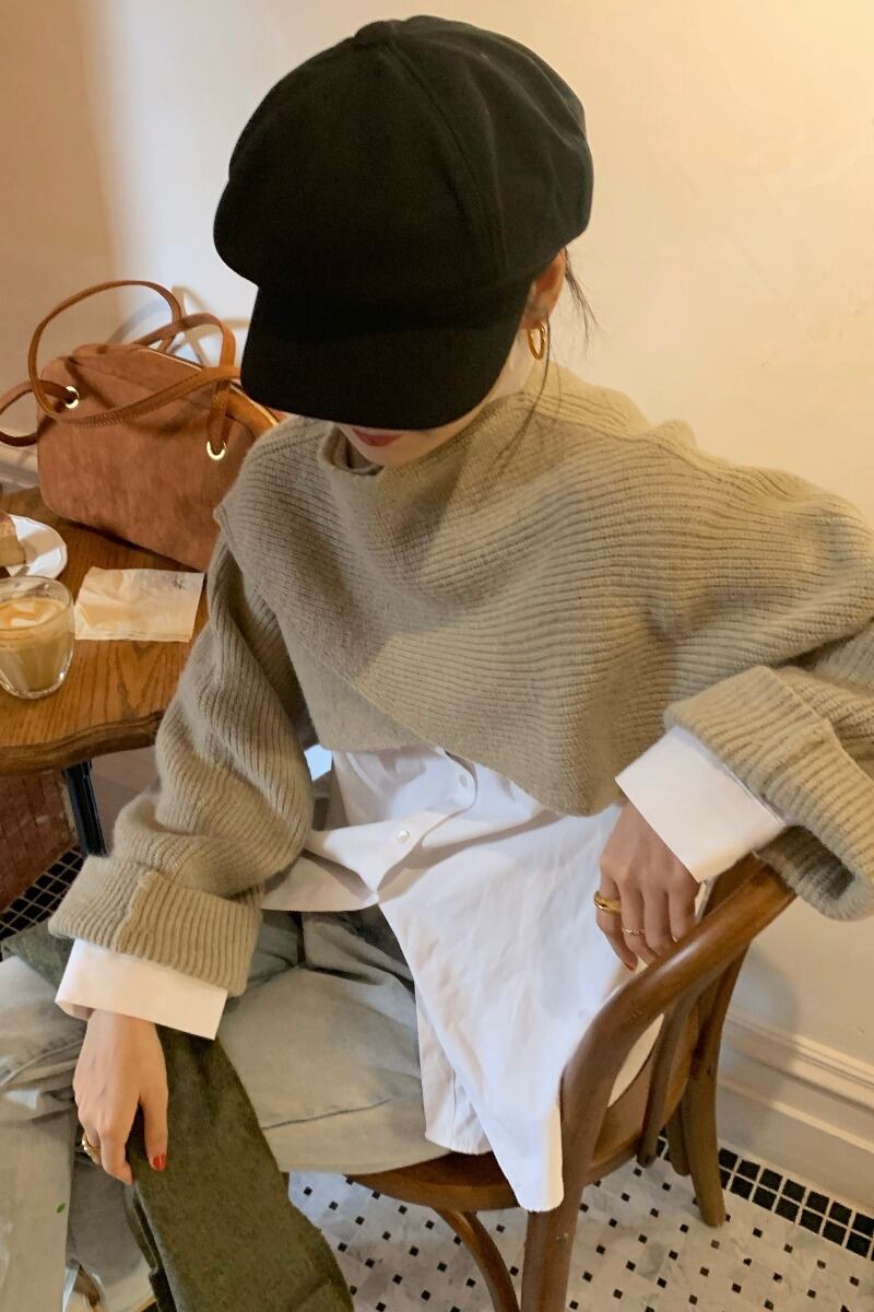センス不規則な長袖プルオーバーセーターレディース 2023 春の新作ハーフハイカラーショートルーズニットトップ ロング スプリング 春物 0921935547956384
